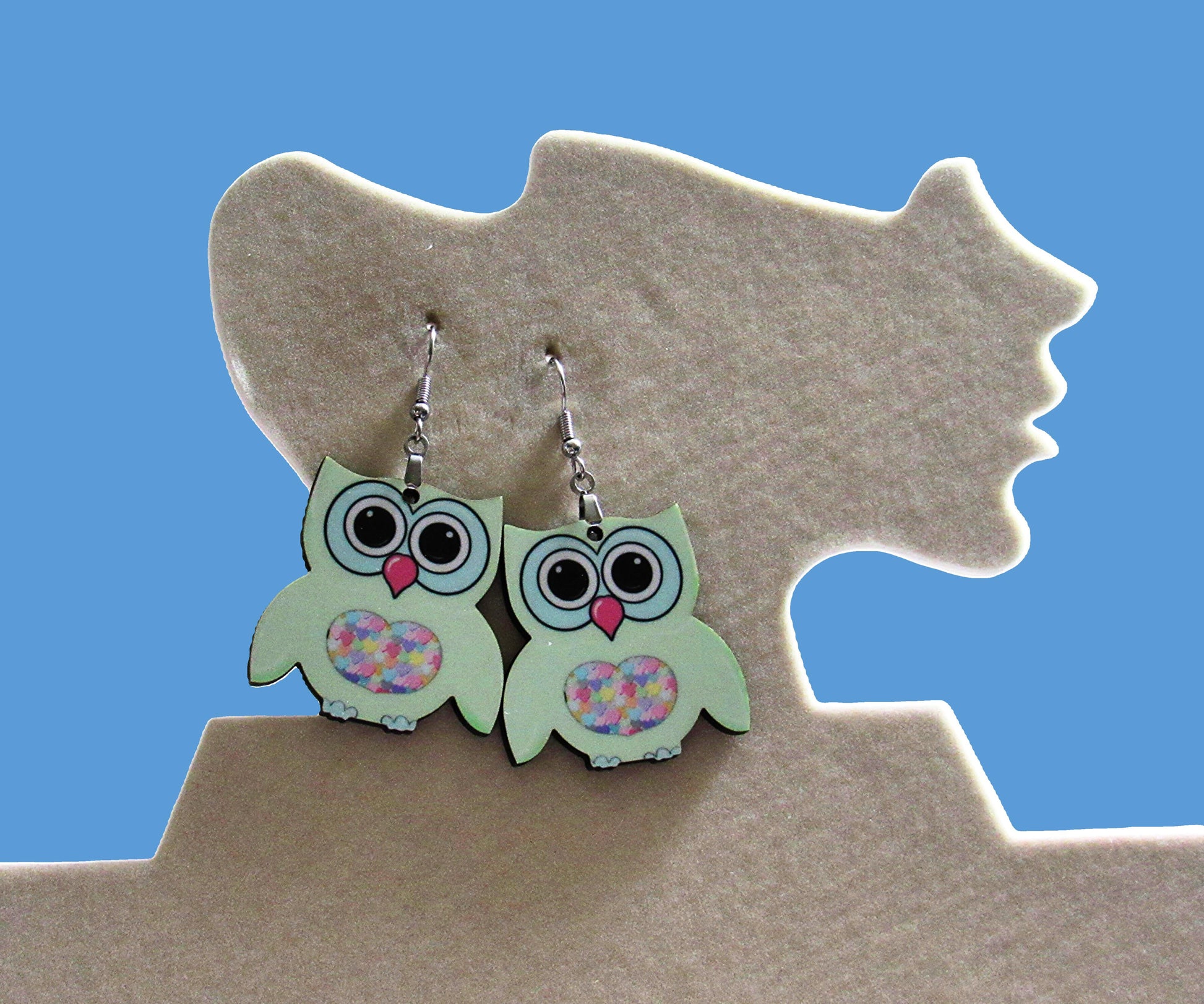 These playful owl-shaped earrings feature a sturdy 1.5-inch MDF base with a total length of 2.5 inches, making them a charming statement piece. Crafted with hypoallergenic wire, they’re perfect for sensitive ears, combining fun design with comfortable wear. Add a whimsical touch to any outfit with these delightful accessories!