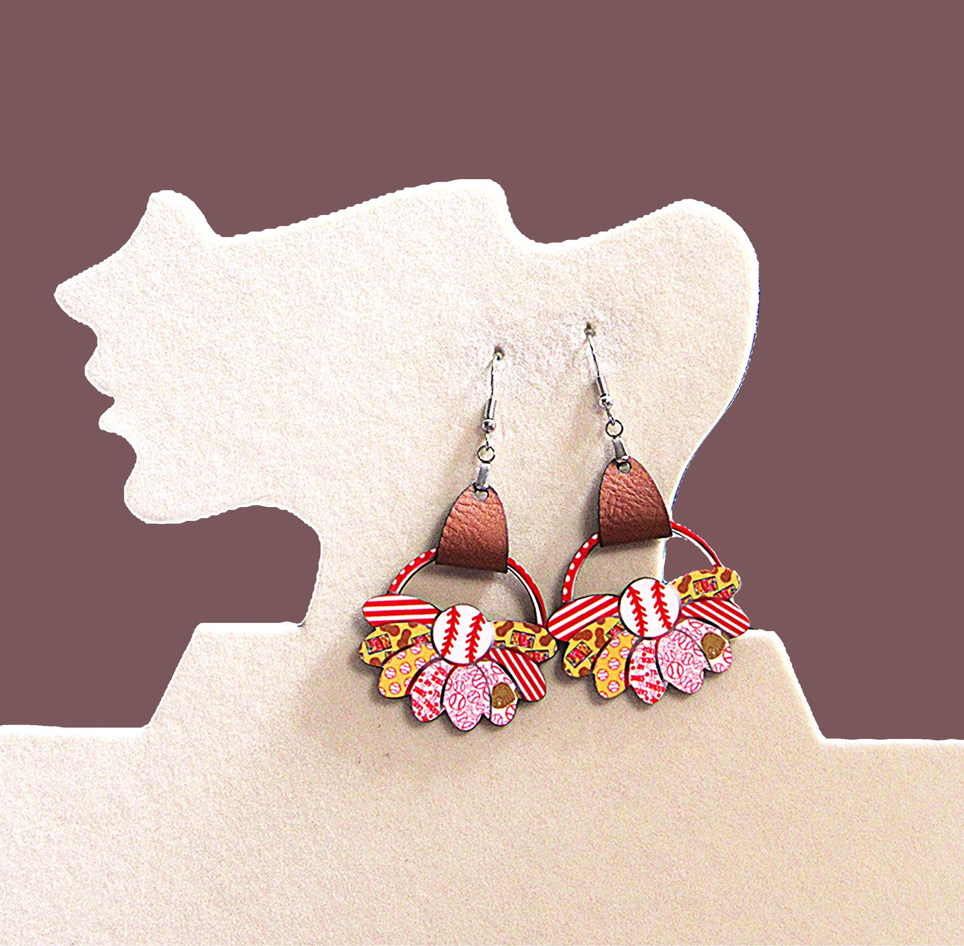 These Faux Leather Sunflower Shaped Sublimated Earrings feature a 1.5-inch base and a total length of 2.75 inches, combining lightweight MDF with a soft faux leather strap for a comfortable fit. The hypoallergenic wire ensures they are safe for sensitive ears, making them an ideal accessory to brighten your look while providing all-day comfort and style.