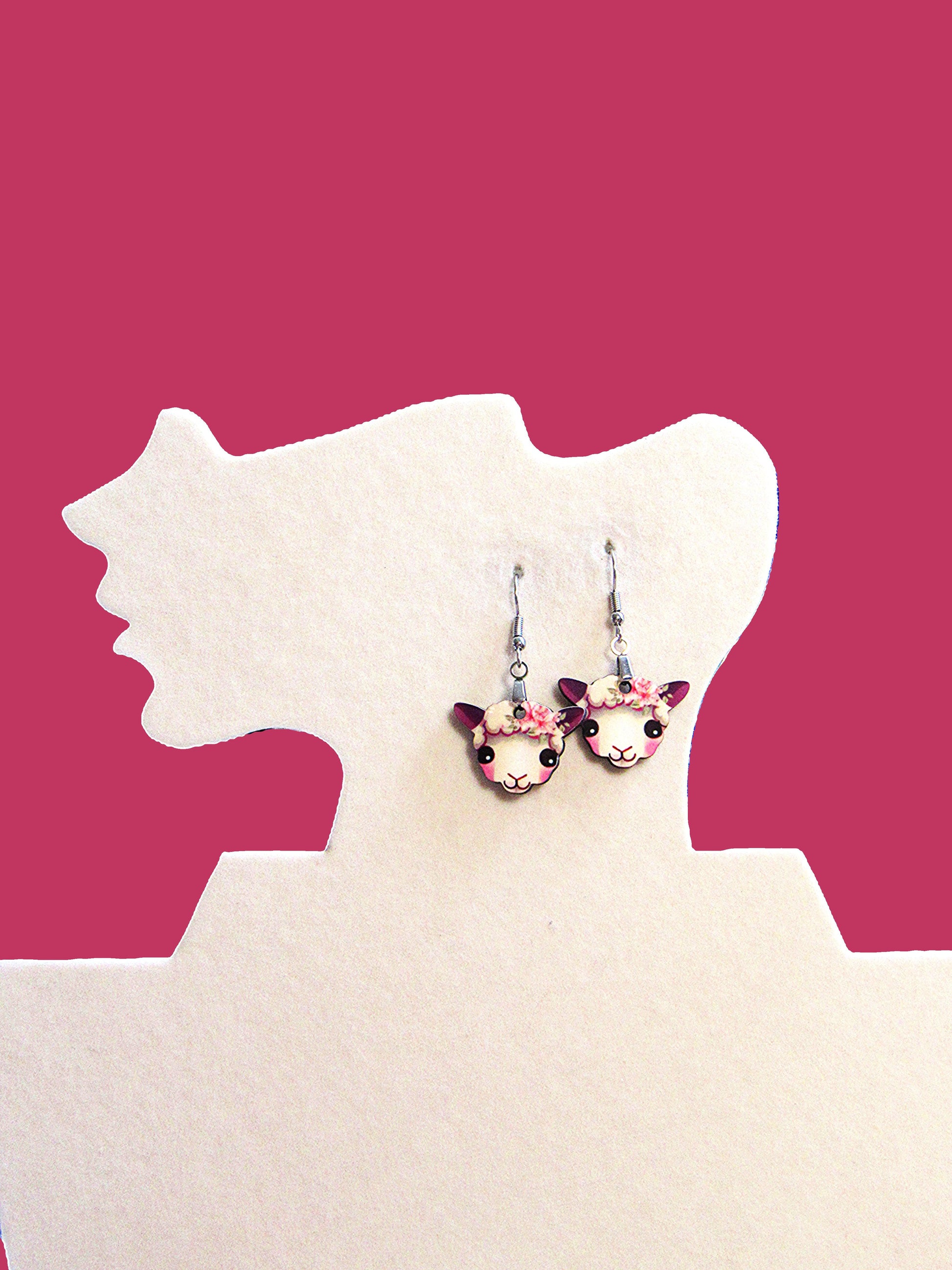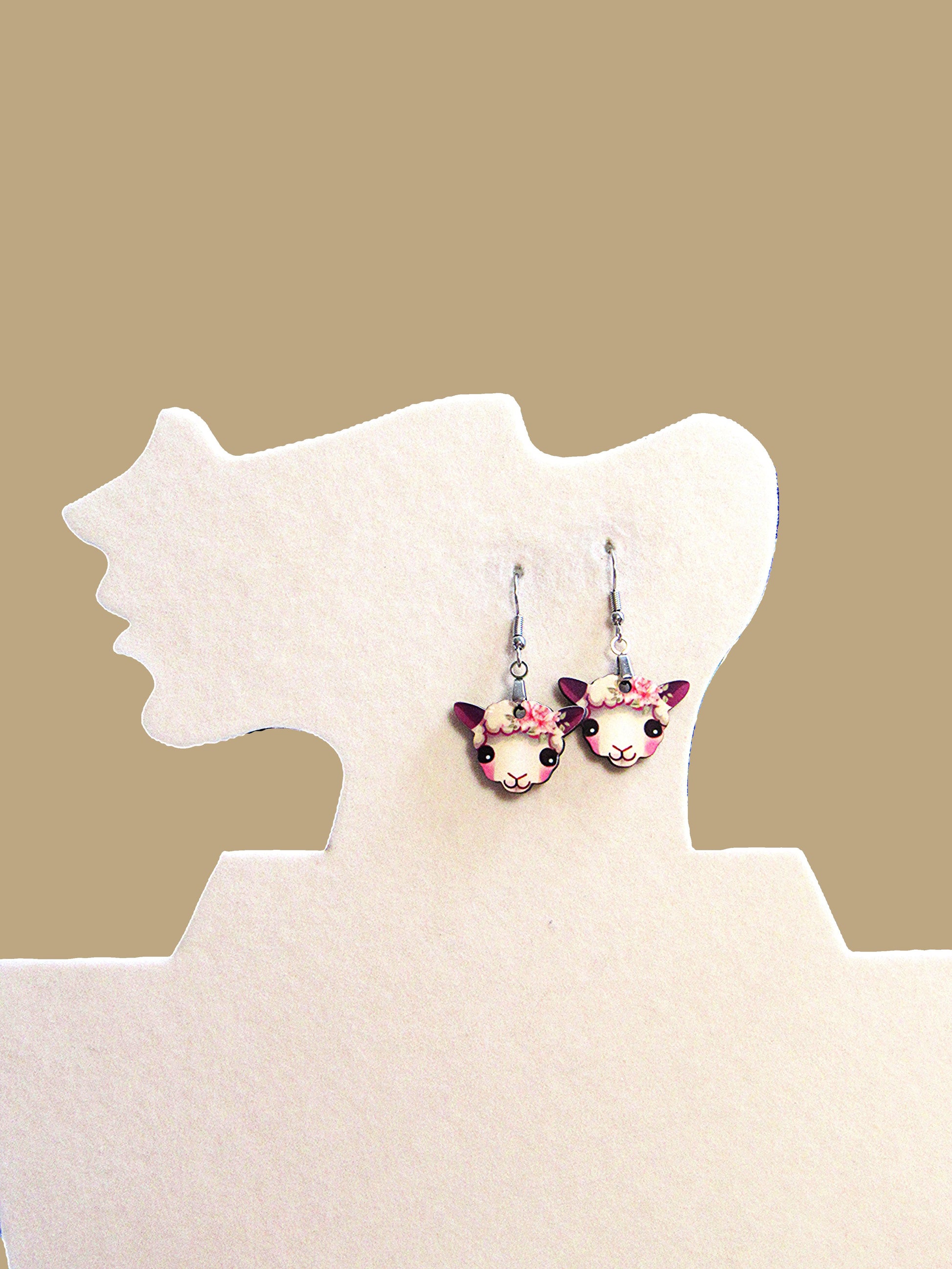 These adorable sheep head-shaped earrings measure 1 inch at the base and 2 inches in total length, crafted from smooth MDF for a lightweight feel. Featuring hypoallergenic wire, they’re perfect for sensitive ears. Add a fun, whimsical touch to your look with these charming, playful accessories!