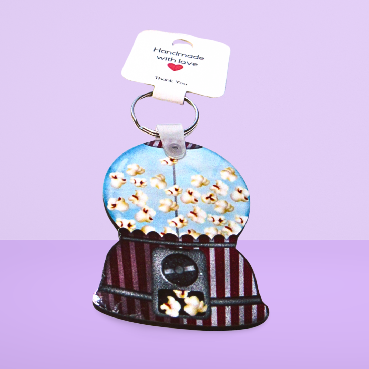 This charming keychain brings festive fun to your everyday carry! Crafted from durable MDF and measuring 1.8 x 2.5 inches, it features vibrant popcorn-themed designs sublimated on both sides for eye-catching appeal from every angle. The snowglobe shape adds a playful touch that's perfect for popcorn lovers and craft enthusiasts alike. Lightweight yet sturdy, it's an ideal accessory for bags, backpacks, or as a thoughtful gift for someone who appreciates whimsical details.