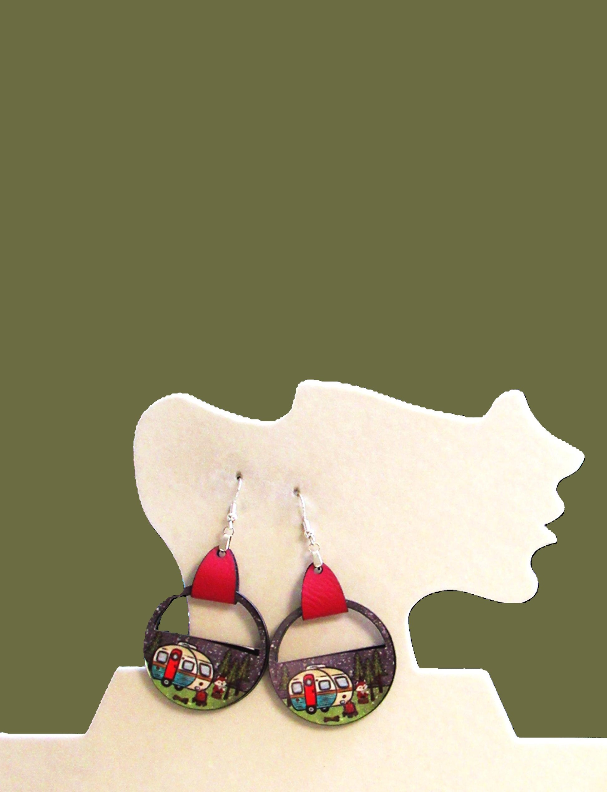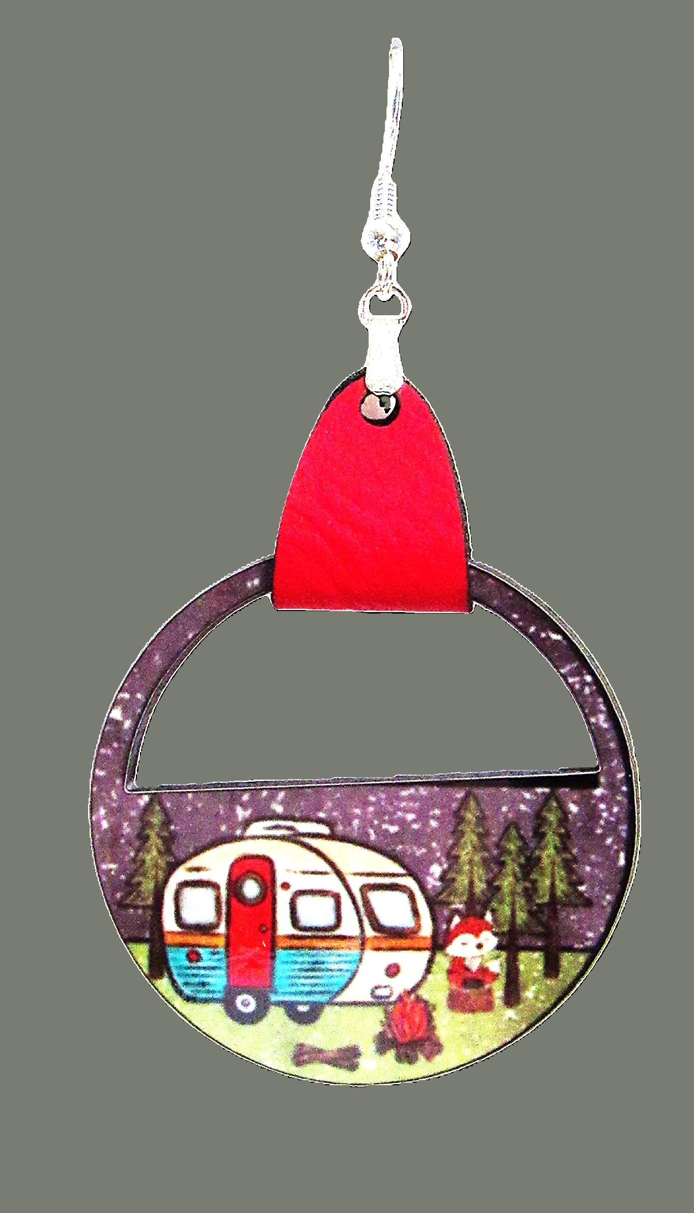 Add a touch of fun to your look with these 1.5-inch round semi-circle earrings, featuring a playful camper theme. Lightweight MDF material combined with hypoallergenic wire ensures all-day comfort, while the faux leather strap adds a unique texture. With a total length of 2.75 inches, they’re perfect for adventure lovers who want to showcase their free-spirited style.