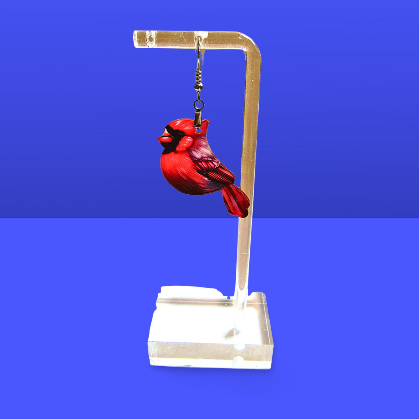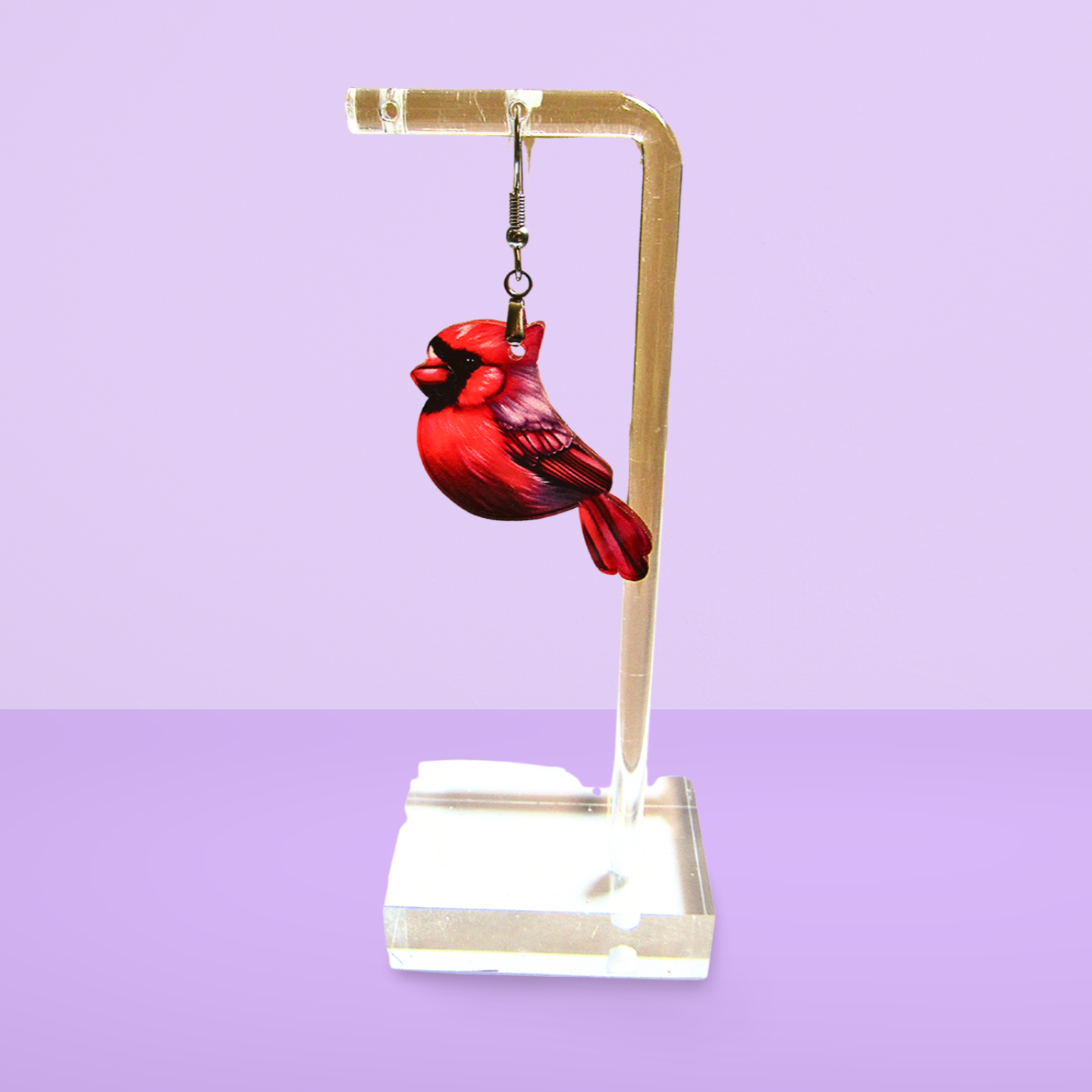 Add a pop of color and charm to your look with these playful acrylic cardinal-shaped earrings. Measuring 1.5 inches, they’re sublimated for vibrant, lasting detail that catches the eye. Lightweight and fun, these earrings are perfect for bird lovers and anyone who wants to brighten their day with a touch of nature-inspired style.