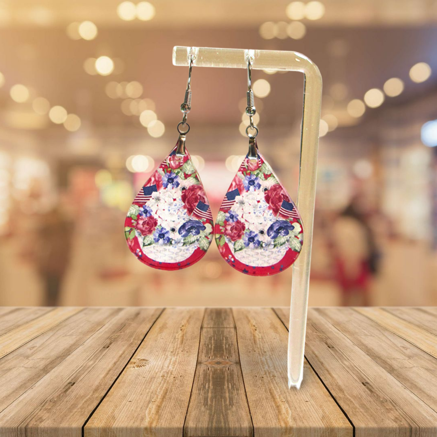 These playful teardrop-shaped earrings bring a splash of 4th of July spirit to your look. Crafted from lightweight acrylic with a 1.5-inch base and 2.5-inch total length, they hang comfortably from hypoallergenic wire, perfect for sensitive ears. Celebrate in style with a fun, festive accessory that’s as vibrant as your holiday mood!
