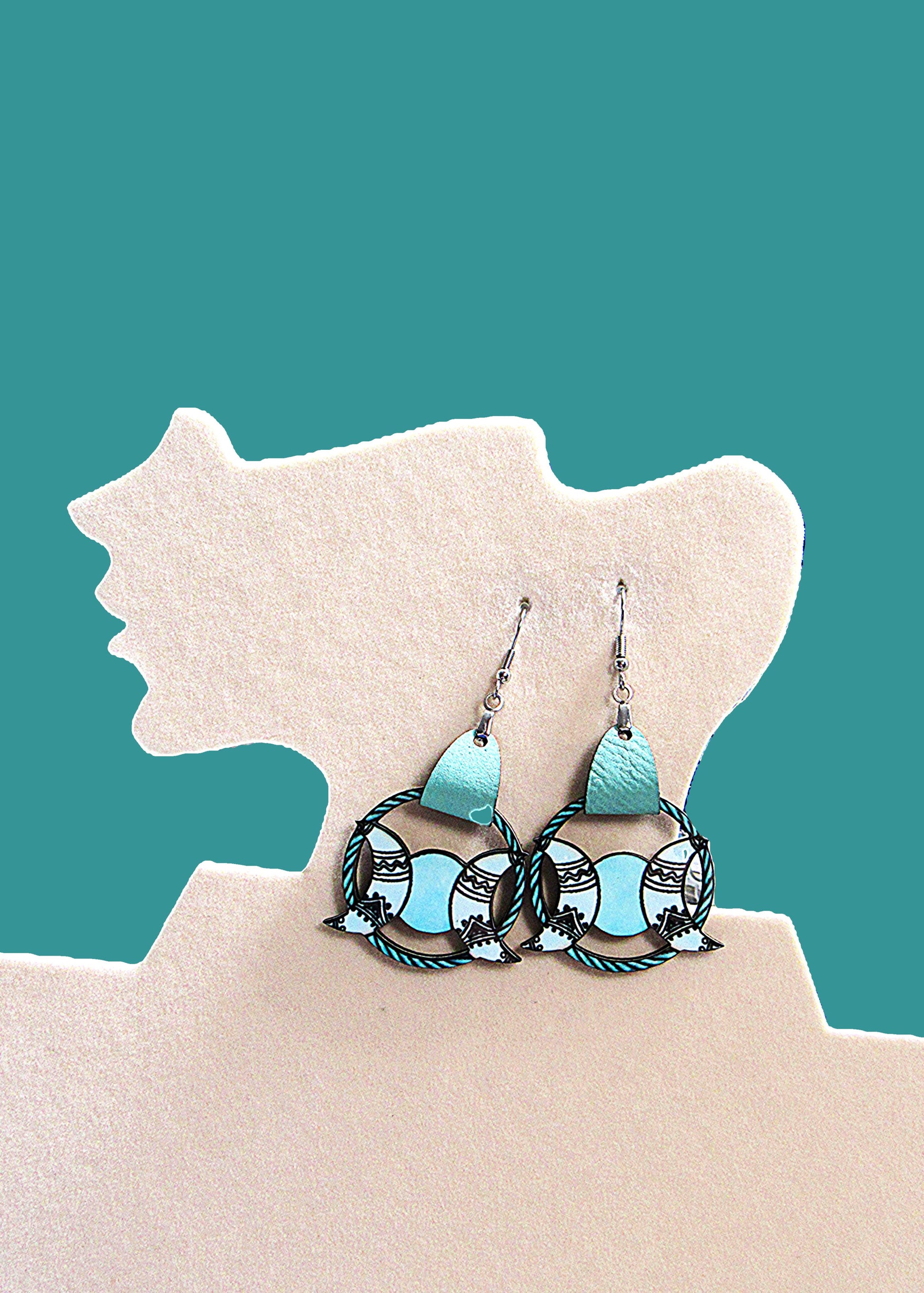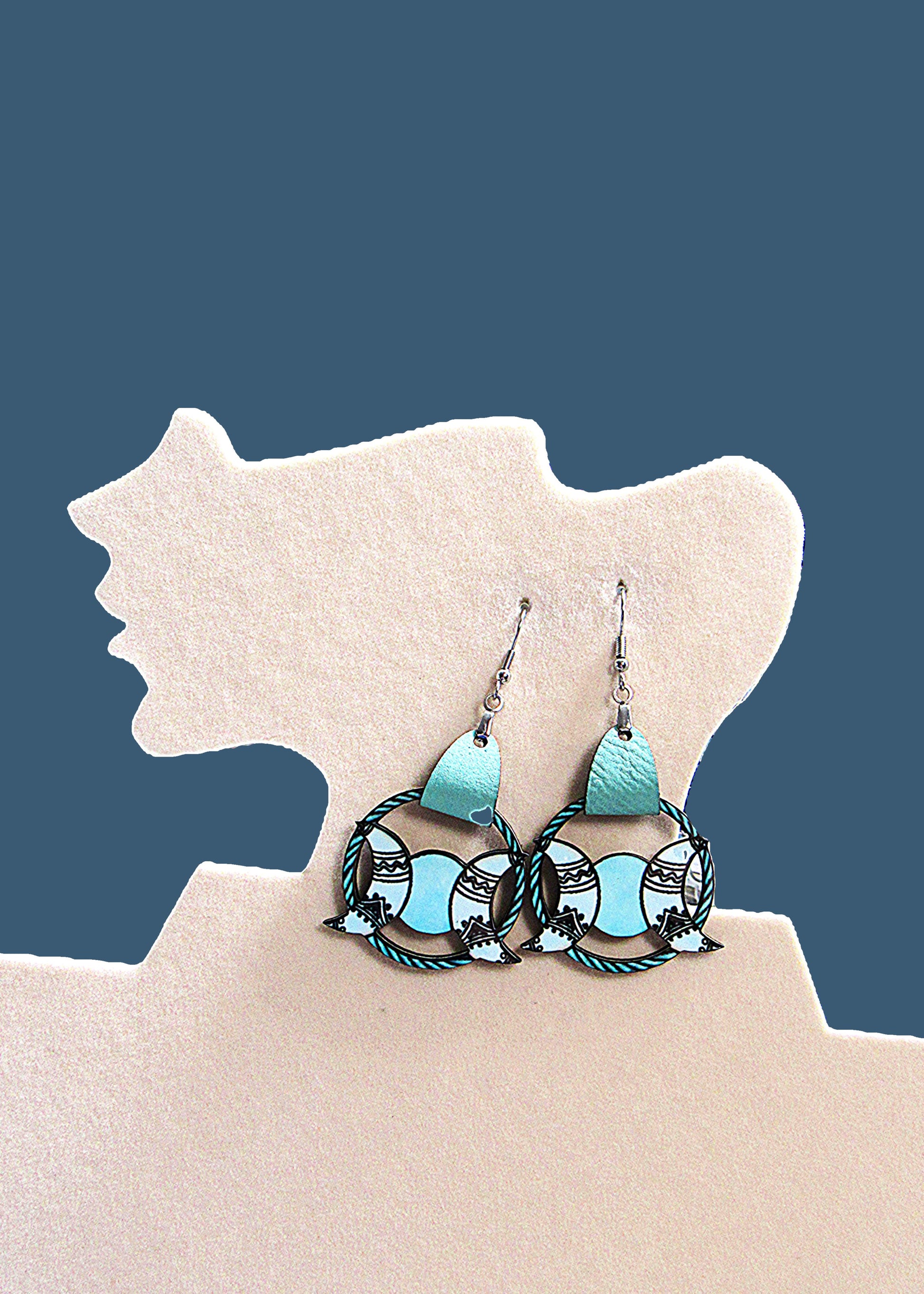 These Faux Leather Celestial Sublimated Earrings feature a 1.5-inch base and a total length of 3 inches, crafted from durable MDF with a hypoallergenic wire for comfortable wear. The faux leather strap adds a stylish touch, making them perfect for those seeking unique, lightweight accessories that combine comfort with eye-catching design.