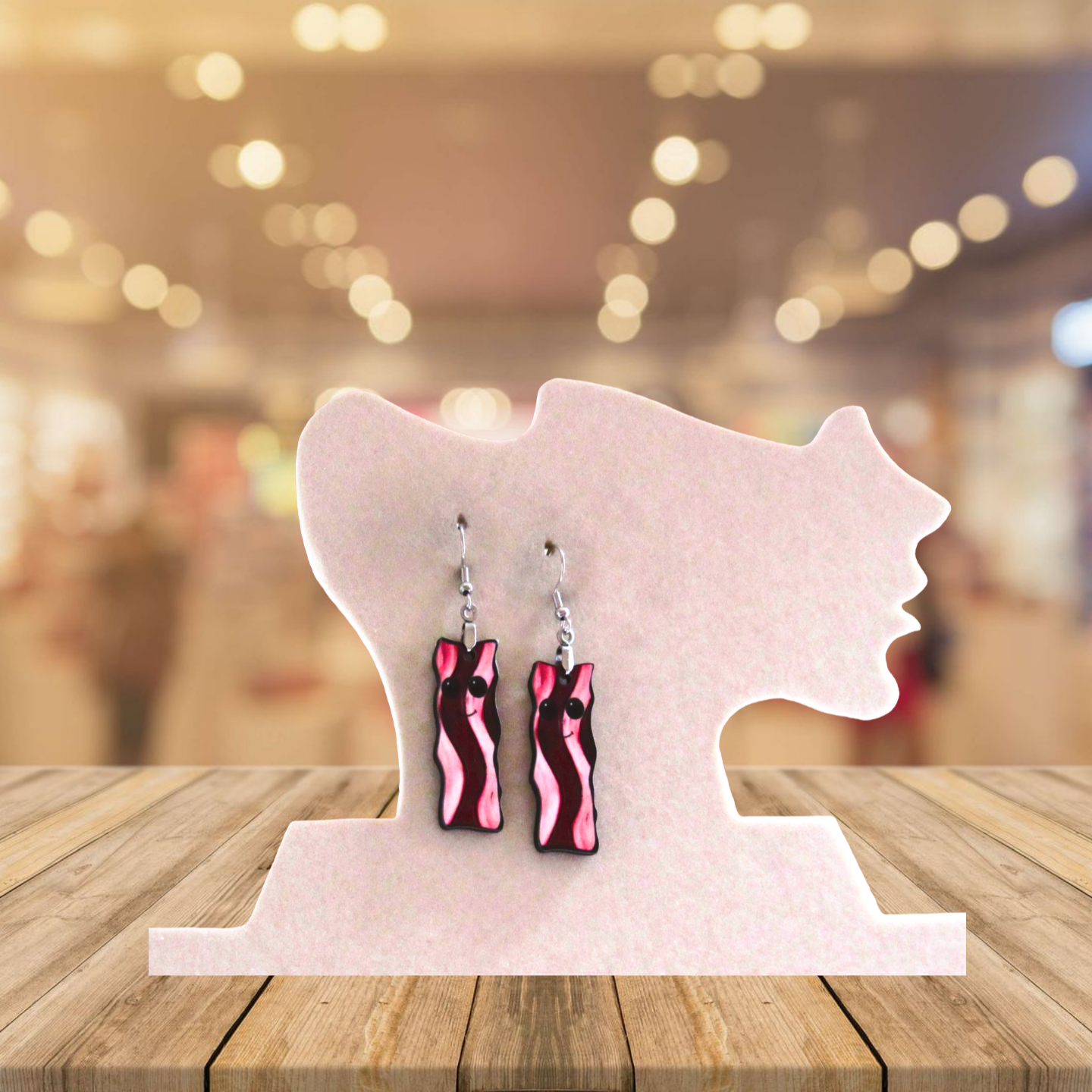 Add a sizzling touch to your style with these playful bacon-shaped earrings! Made from lightweight MDF with hypoallergenic wire, they’re comfortable for all-day wear. Measuring 1.5 inches wide and 2.5 inches long, each earring features a fun sublimated design of bacon with a cute face, sure to bring smiles wherever you go.
