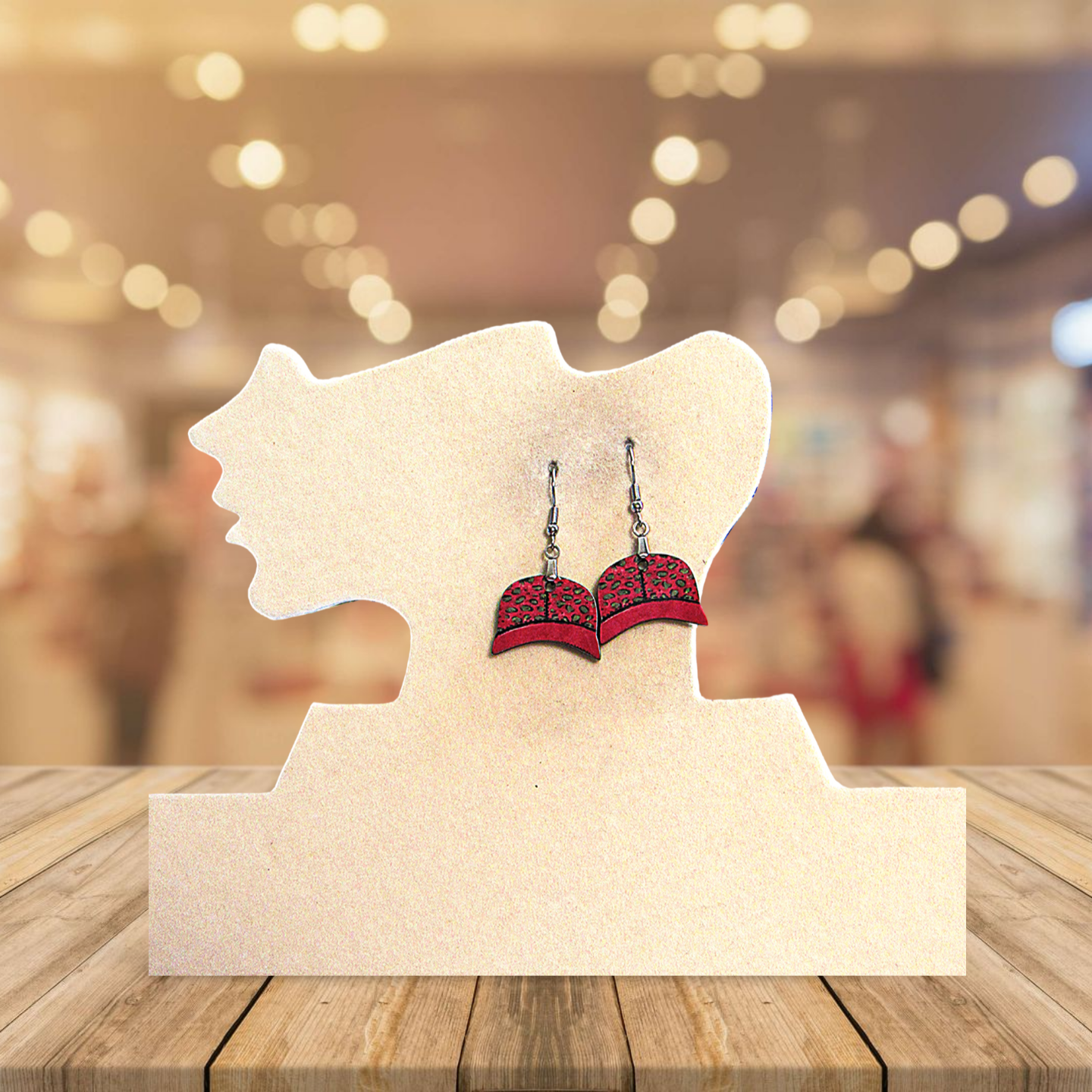 These playful baseball cap-shaped stud earrings feature a sturdy 1-inch wide MDF base and a total length designed for comfortable wear. Crafted with hypoallergenic wire, they’re perfect for sensitive ears, adding a sporty and fun touch to any outfit.