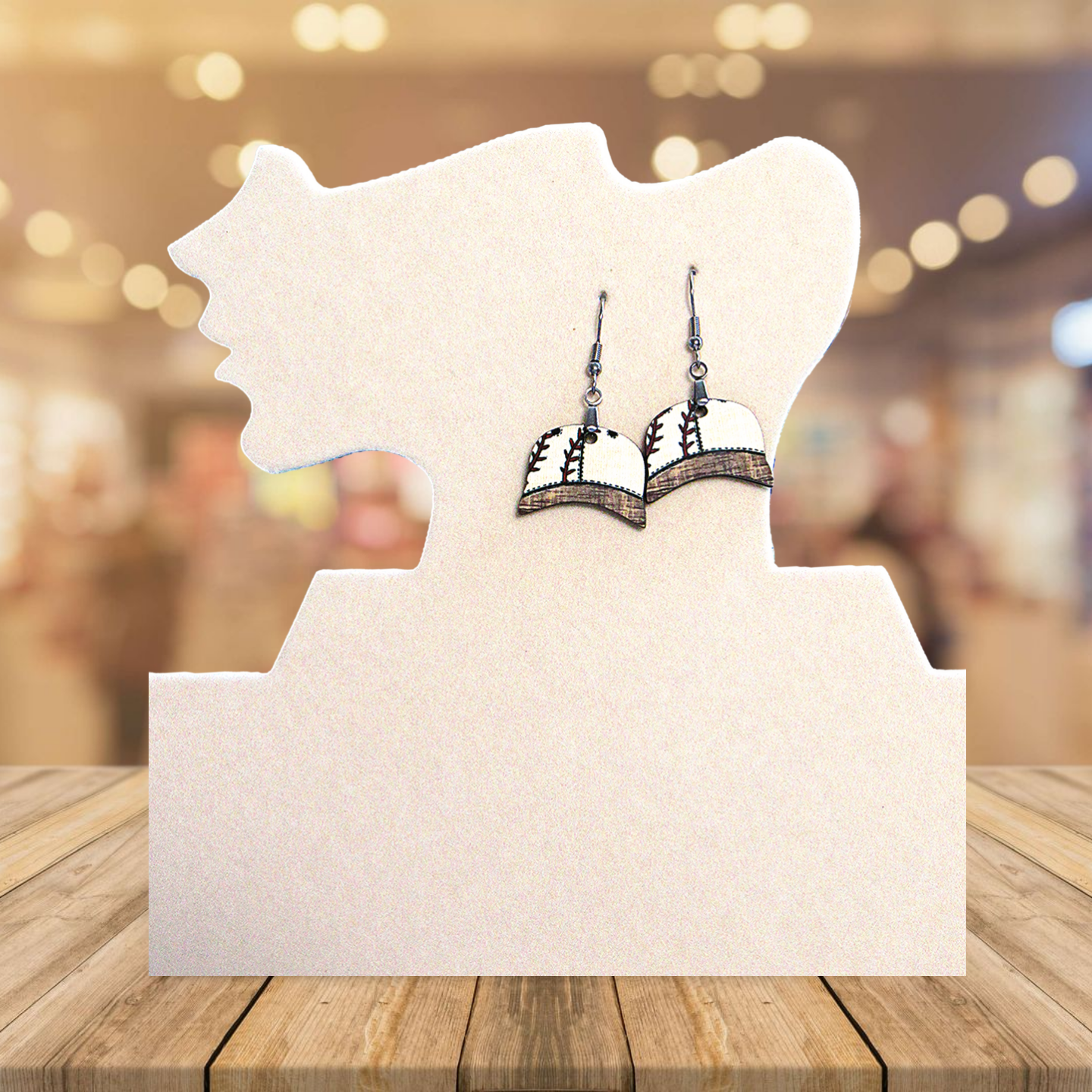 Add a sporty twist to your look with these playful baseball cap-shaped sublimated earrings. Featuring a 1-inch MDF base and crafted with hypoallergenic wire, they ensure comfort and durability for sensitive ears. Perfect for fans who want to wear their team spirit with a fun, lightweight accessory.