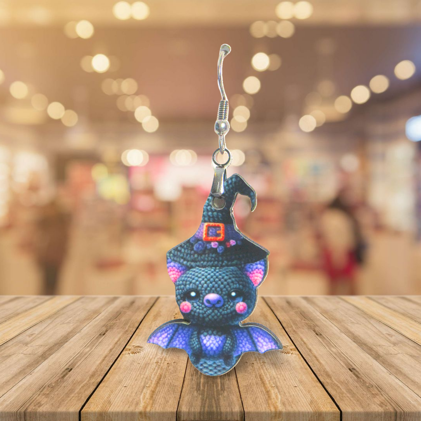 Bat with Witch Hat Shaped Sublimated Earrings 1.5 inch