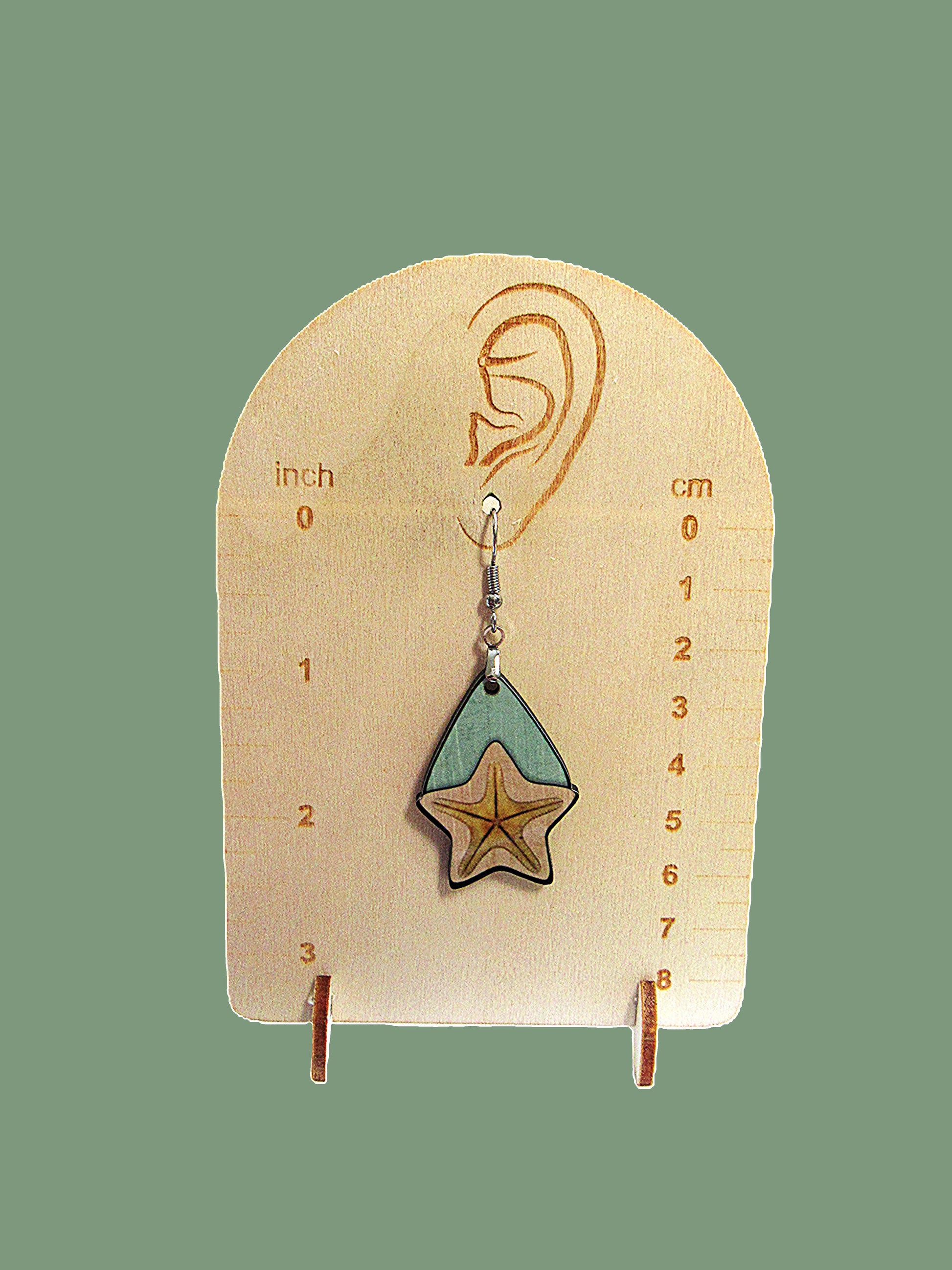 These teardrop star-shaped earrings feature a 1.5-inch MDF base with a total length of 2.5 inches, combining lightweight comfort with eye-catching design. Crafted with hypoallergenic wire, they are gentle on sensitive skin, making them a great choice for everyday wear. The warm brown starfish pattern adds a natural, beach-inspired touch to your look.