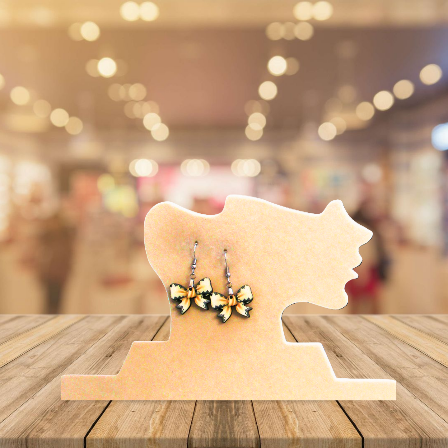 Add a playful twist to your look with these bow-shaped earrings featuring a charming spider theme. Measuring 1 inch wide and 1.75 inches long, they’re crafted from lightweight MDF and hang on hypoallergenic wire, ensuring comfort for sensitive ears. Perfect for adding a fun, spooky touch to any outfit!