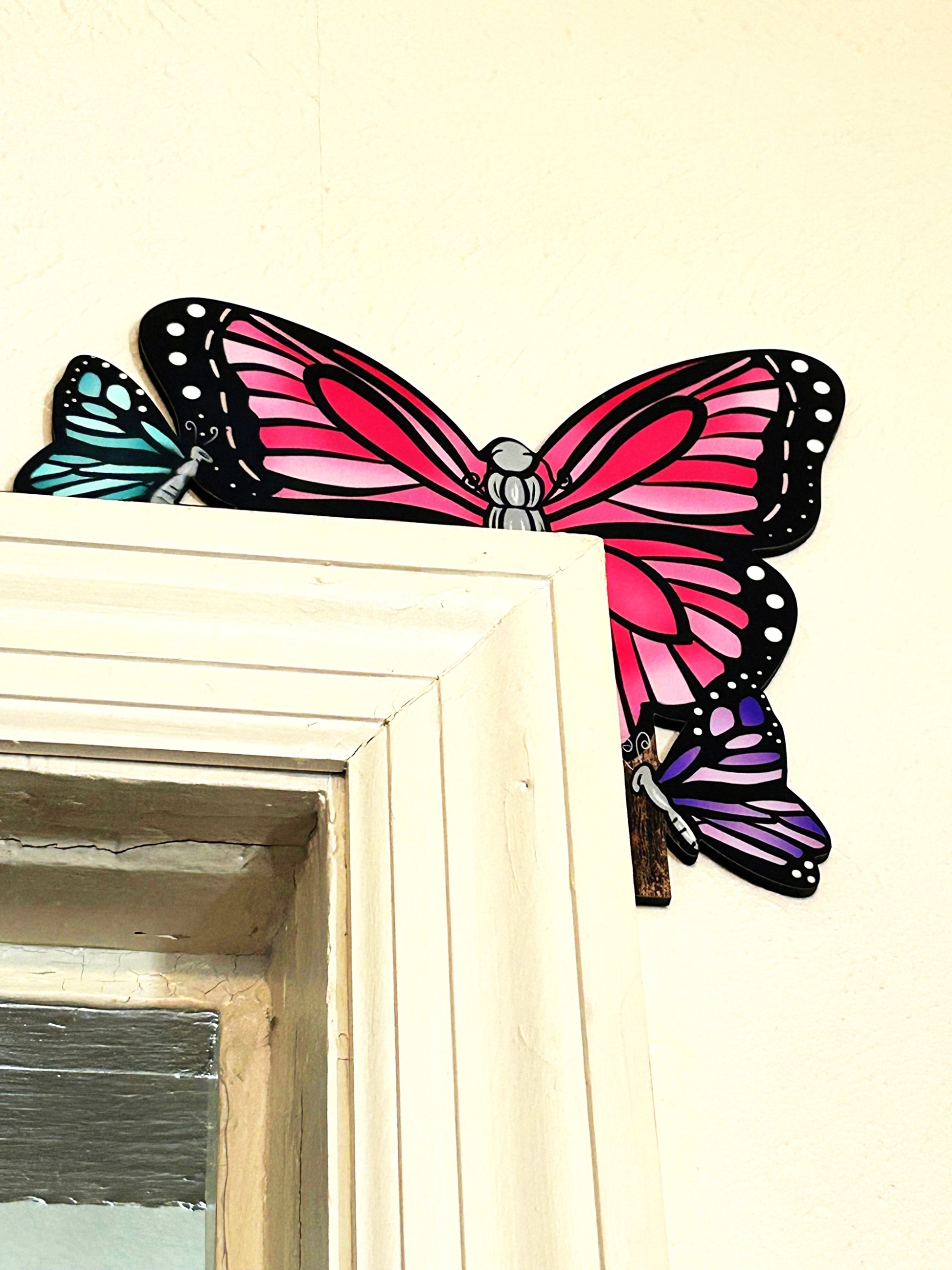 Discover the Butterfly Shaped Sublimated Corner Sitter - a unique, vibrant, and durable accessory that adds a touch of whimsy to any room. Elevate your decor with this eye-catching piece today! 8.15x6.47
