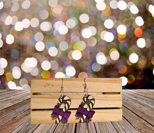 Candy Cane Shaped Sublimated Earrings 1.5 inch