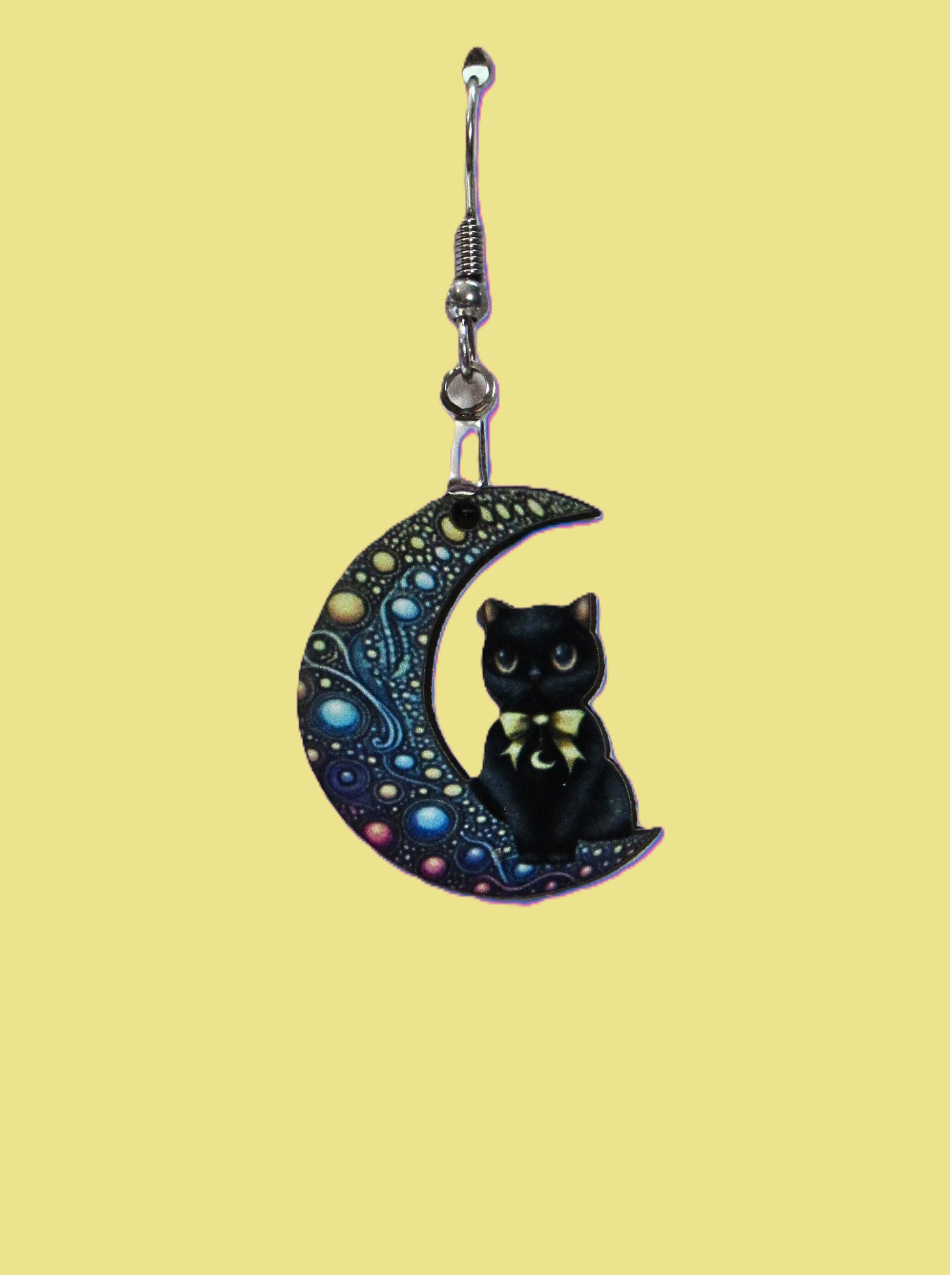 Cat on Moon Shaped Sublimated Earrings 1 inch