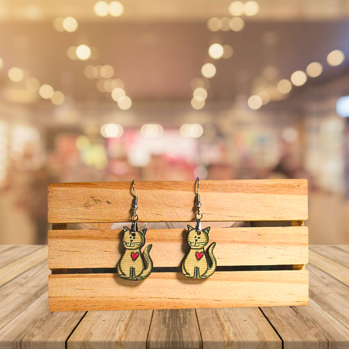These charming cat-shaped earrings bring playful personality to any outfit. Crafted from lightweight MDF and sublimated with vibrant, detailed designs on one side, they're built to last. At 1 inches wide with a total length of 2 inches, they offer the perfect balance of statement style and comfortable wear. The hypoallergenic wire ensures all-day wearability without irritation, making them ideal for sensitive ears. Express your feline love with confidence and comfort.