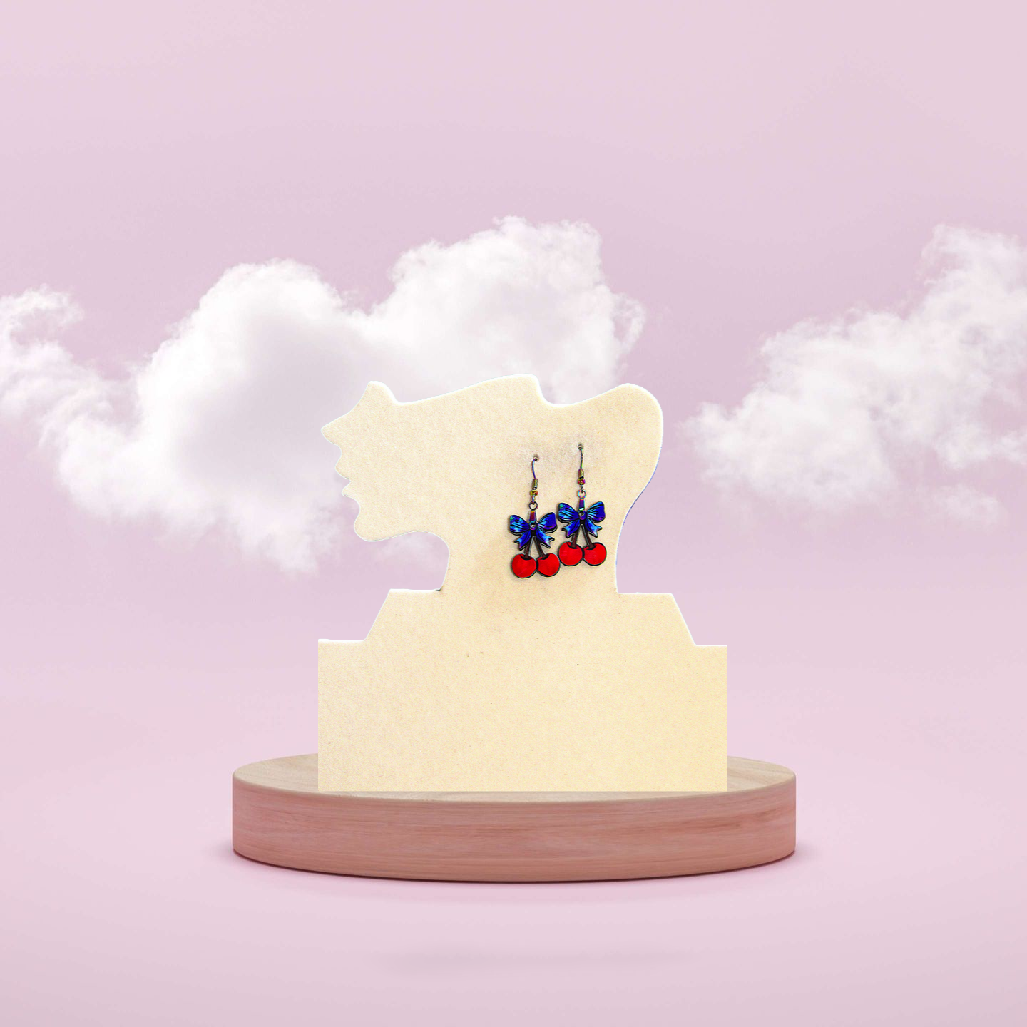 Bring a fun twist to your accessories with these playful cherries earrings featuring a bright blue bow. Made from durable 1-inch MDF, each earring measures 2 inches long and showcases vibrant sublimation on one side. The hypoallergenic wire keeps you comfortable while adding a splash of color that’s perfect for any occasion that calls for a little cheeky charm.