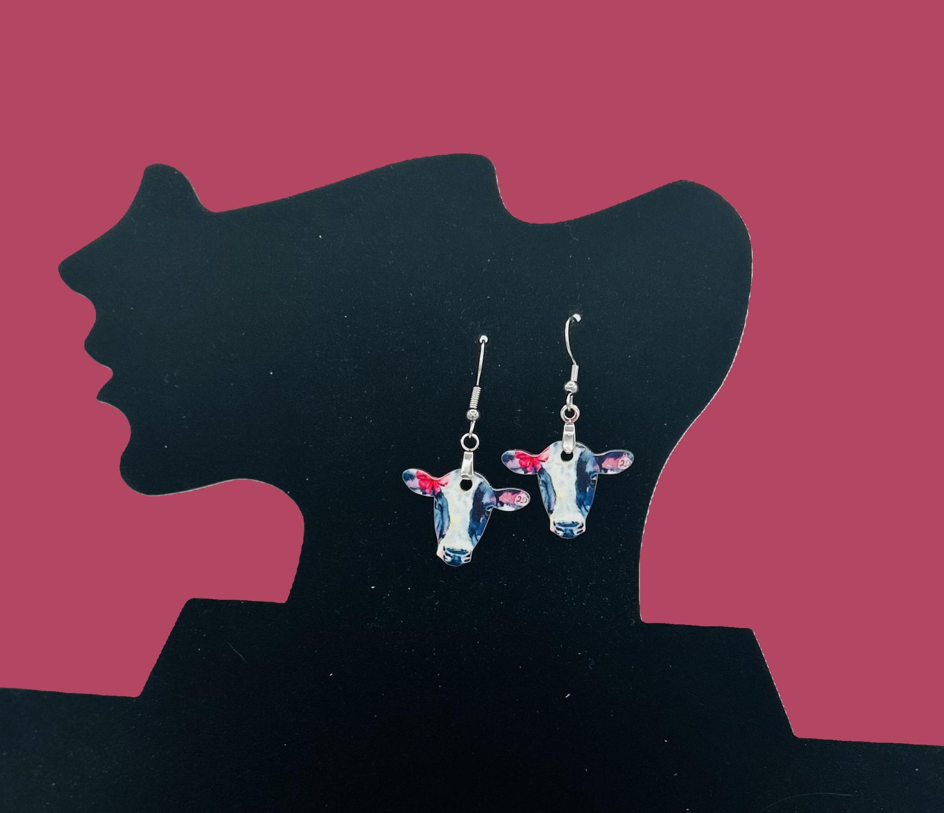 These cow head-shaped earrings combine style and comfort with a 1-inch MDF base and a total length of 2 inches. Crafted from hypoallergenic wire, they are gentle on sensitive skin, making them perfect for everyday wear. Lightweight and unique, these earrings add a playful yet elegant touch to any outfit.