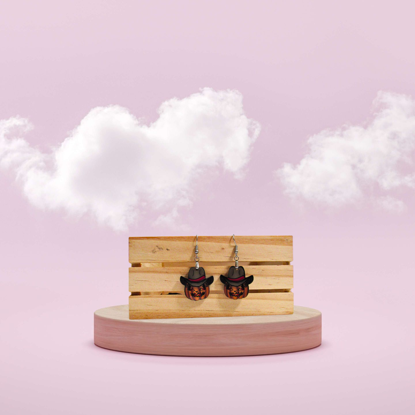 Cowboy Pumpkin Shaped Sublimated Earrings 1 inch