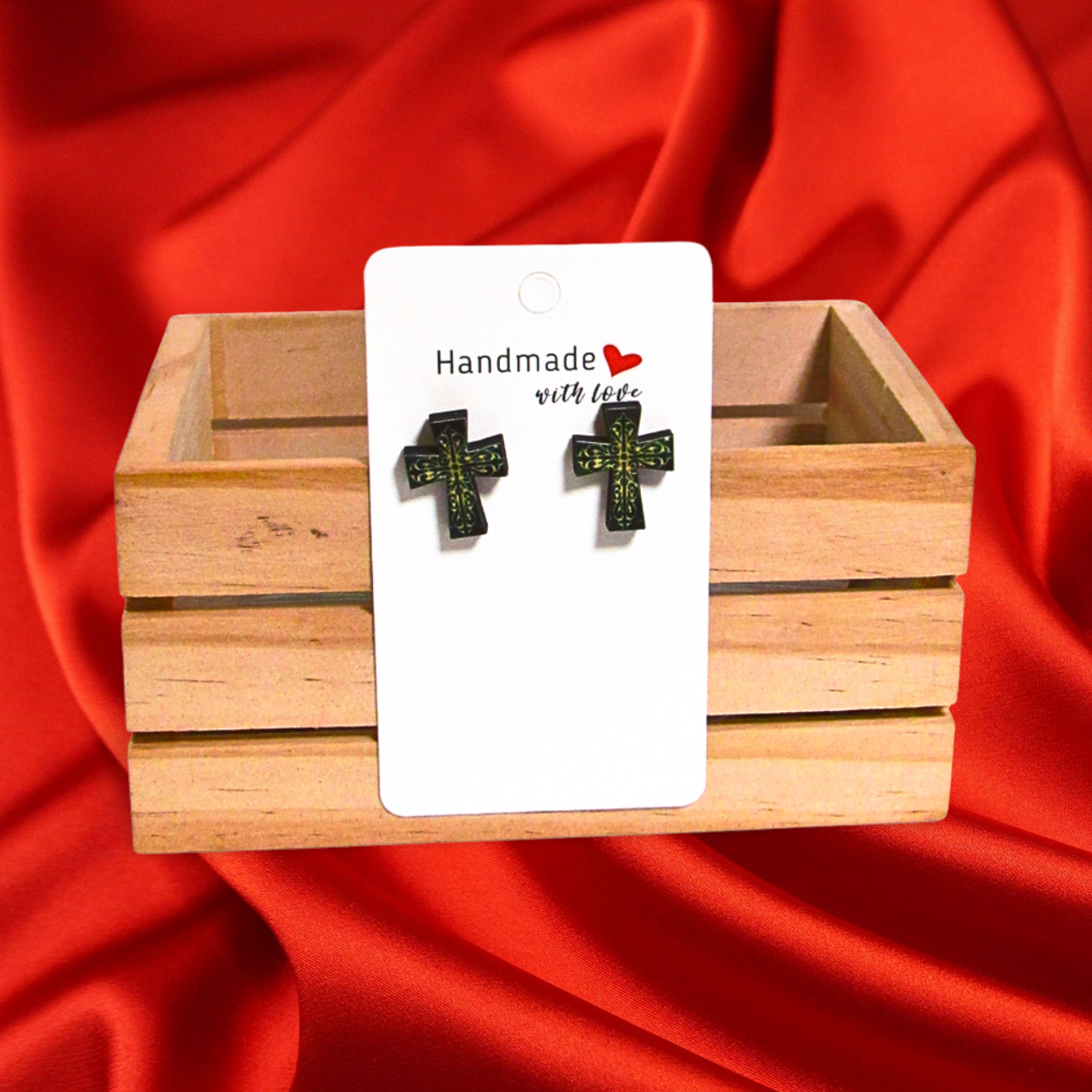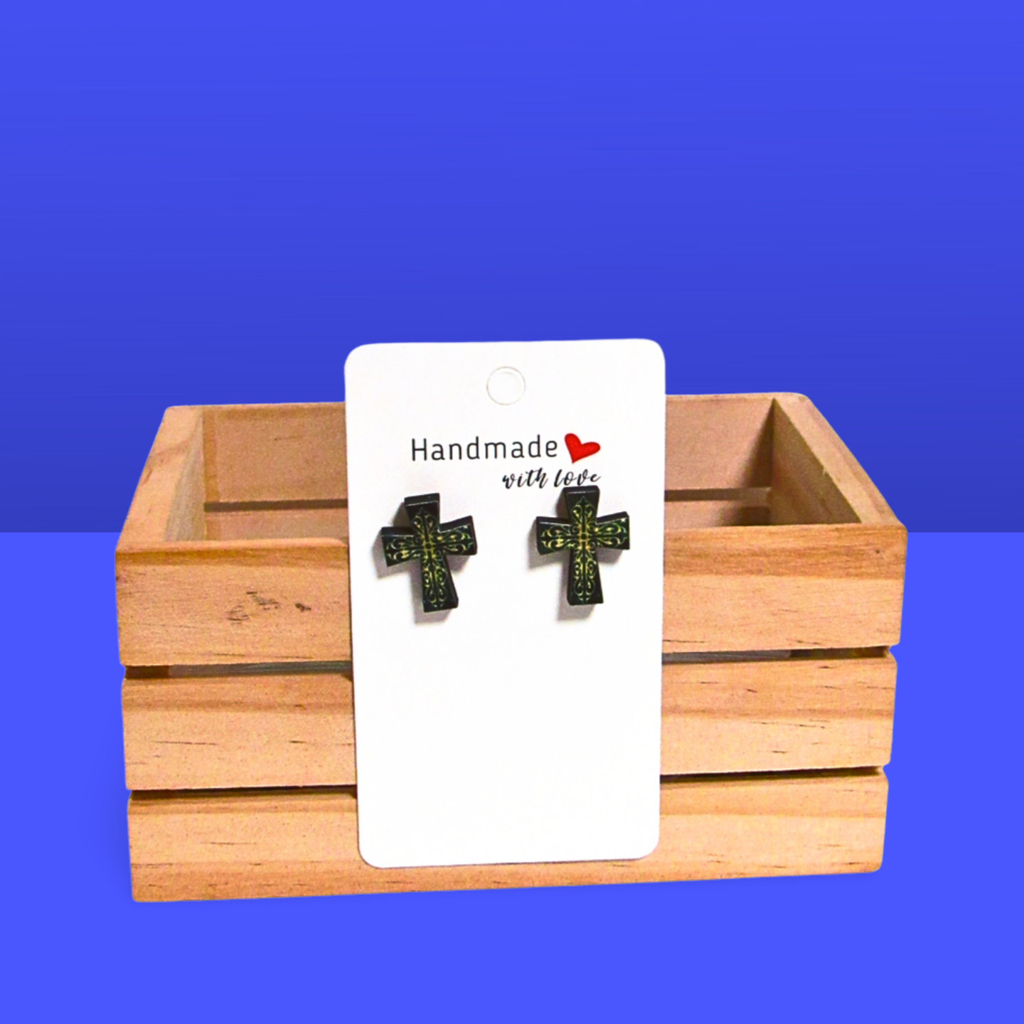 These charming cross-shaped earrings combine spiritual style with everyday wearability. Crafted from lightweight MDF and measuring approximately 0.75 inches, they feature vibrant sublimated designs on one side that won't fade. The hypoallergenic stainless steel studs make them perfect for sensitive ears, ensuring comfort throughout the day. A meaningful accessory that celebrates your faith with flair.