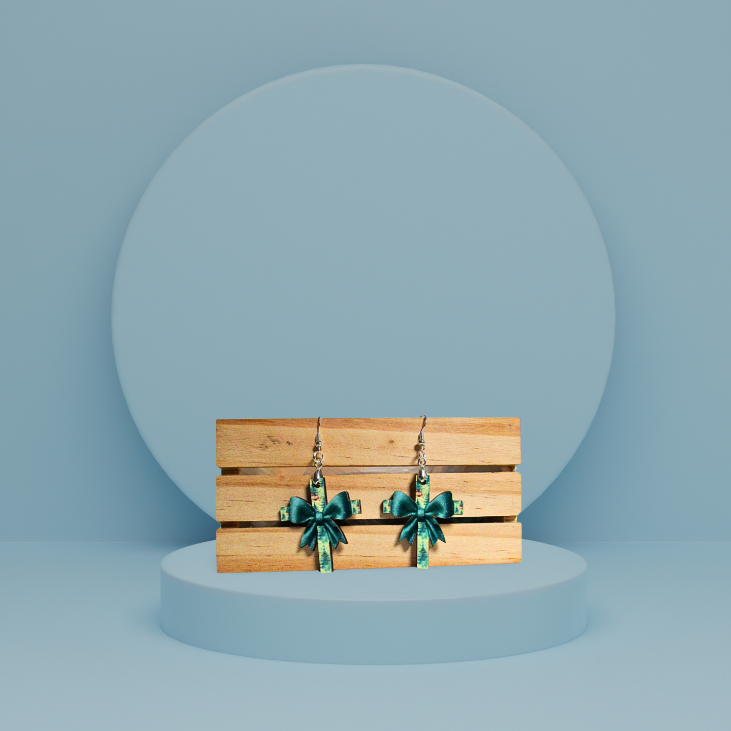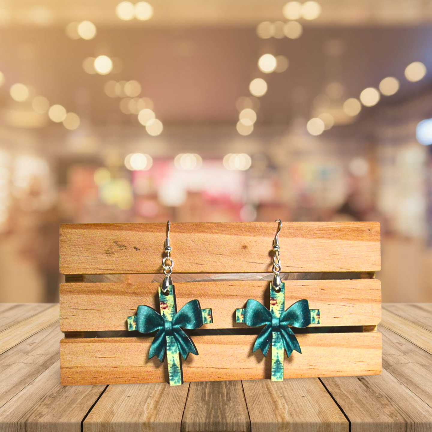 Cross with Bow Shaped Sublimated Earrings 1.5 inch