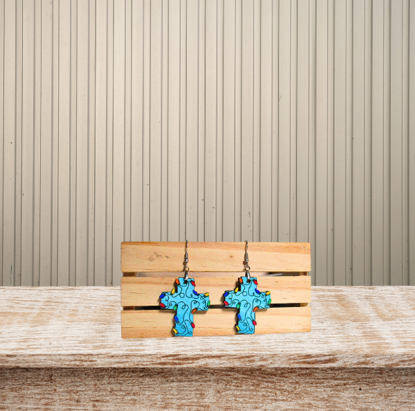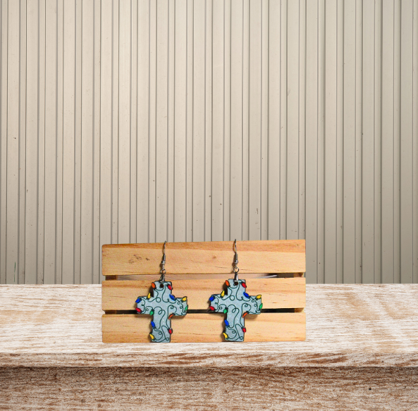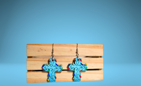 Cross with Lights Shaped MDF Sublimated Earrings