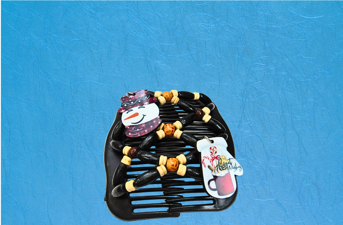 This Double Comb Hair Clip offers a secure, stylish way to keep your hair in place. Measuring 2.7 inches wide and 4 inches long, it features durable plastic combs connected by rubber cords and wood beads for flexibility and comfort. Finished with MDF sublimated charms for a unique touch, it’s easy to use: simply insert one comb into your hair, pull it gently, and slide the second comb into place for a snug, supportive hold. Perfect for adding charm and control to your hairstyle.