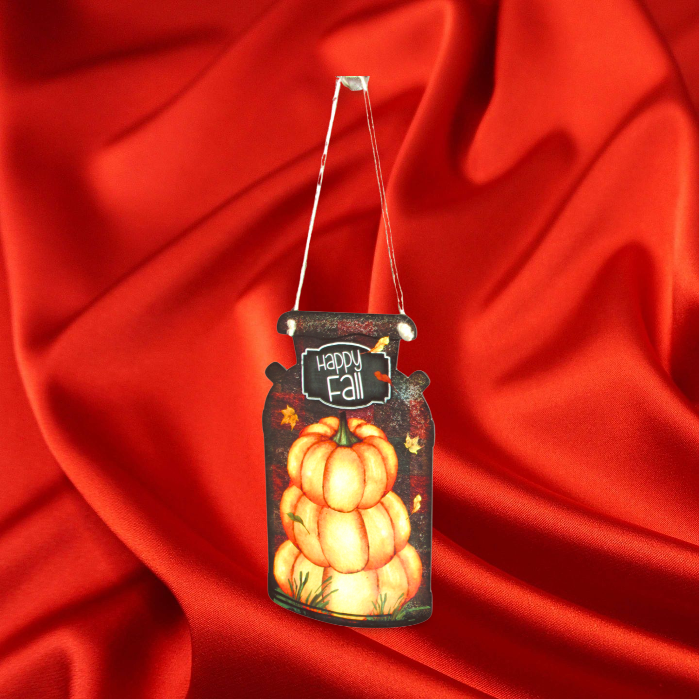 Celebrate the season with this playful Milk Can Shaped Sublimated Door Hanger! Measuring 5.7 x 10 inches, it features a vibrant "Happy Fall" design sublimated on one side. Crafted from sturdy MDF and finished with a rope for easy hanging, it’s the perfect cheerful touch to welcome autumn into your home.