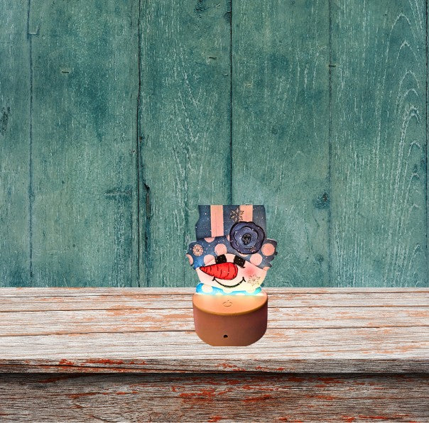 This 3.89x4.5inch Snowman Head acrylic light features vibrant sublimation on one side, creating a beautiful illuminated display when paired with the light base. Crafted from durable acrylic, it enhances any space with a subtle glow.Ideal for adding a warm, decorative touch wherever you need soft lighting. Enjoy flexible power options—use three AA batteries installed in the base or plug in the included USB cable for convenient LED illumination. Switch between vibrant colors effortlessly with the touch-activated button or handheld remote control. Whether you're decorating a shelf, desk, or craft space, this versatile light base brings warmth and holiday cheer to any room.