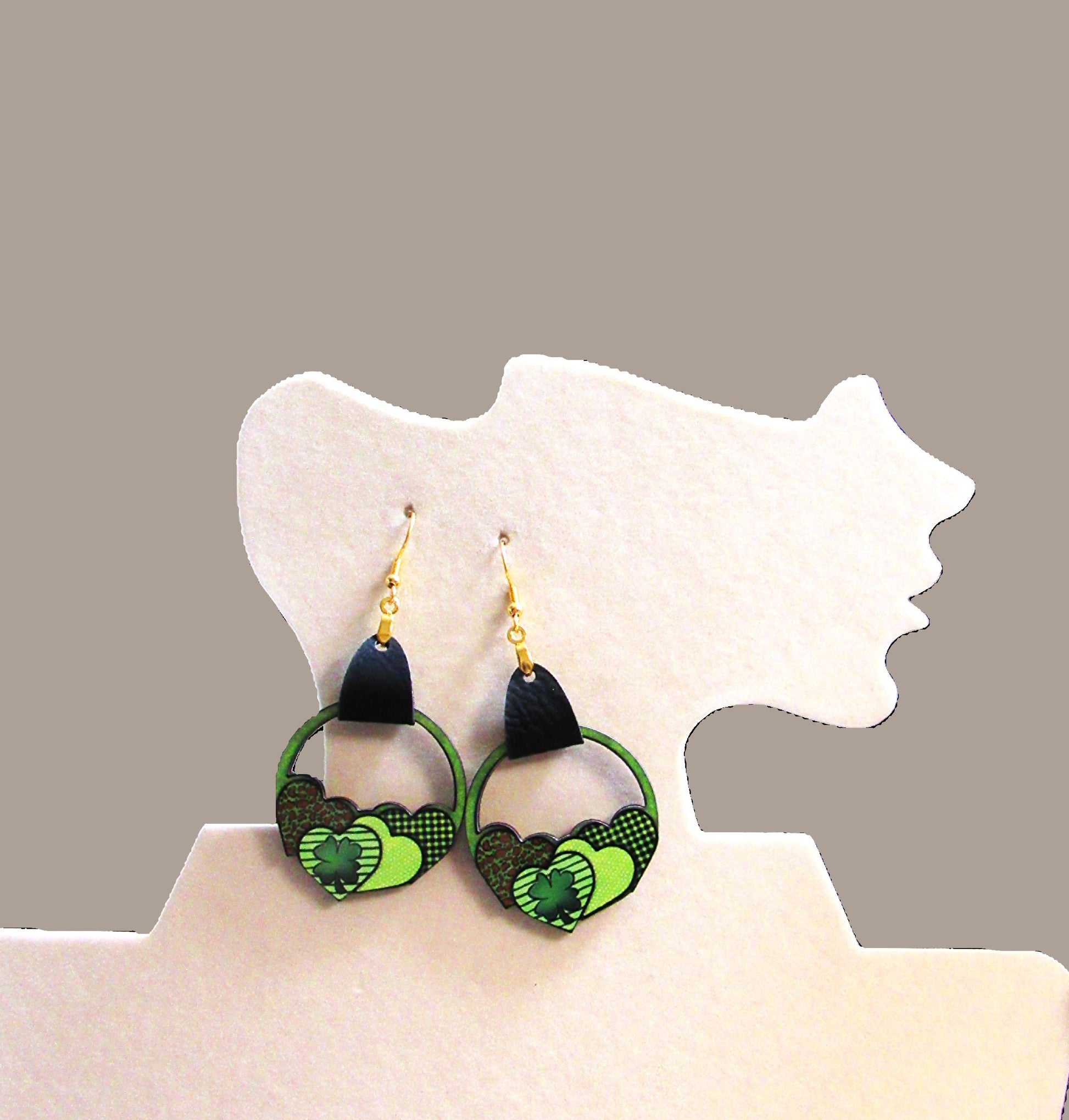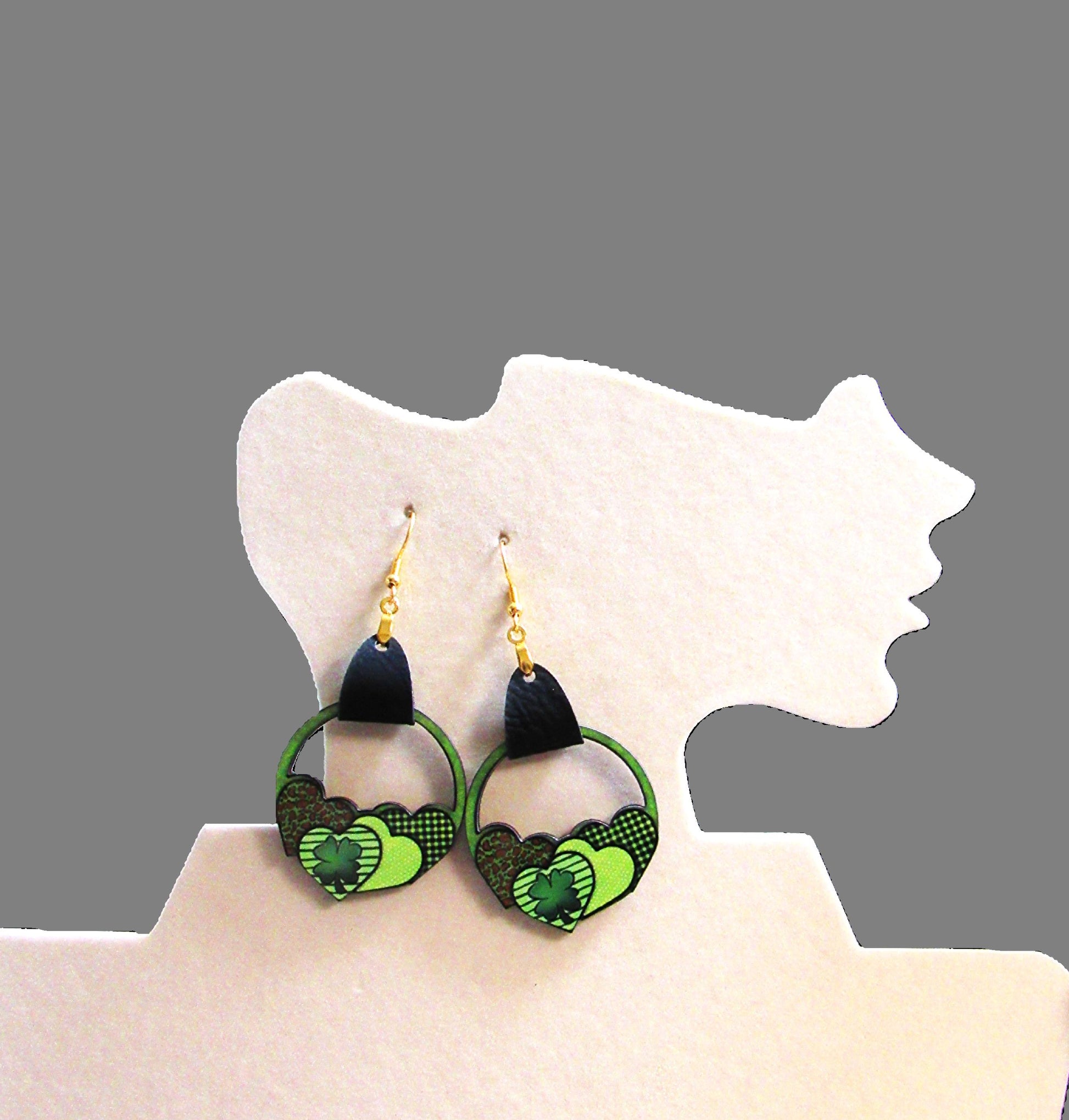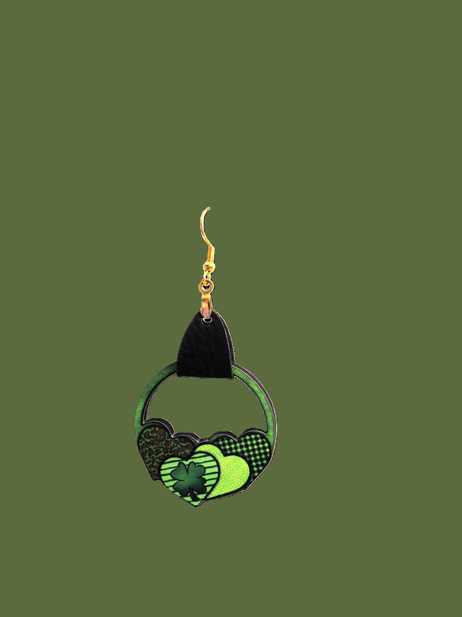 Celebrate St. Patrick’s Day with a twist of charm and comfort! These Round Heart Cluster earrings feature a playful heart-shaped design made from smooth MDF, measuring 1.5 inches at the base and 2.75 inches in total length. The hypoallergenic wire ensures gentle wear, while the faux leather strap adds a stylish touch. Perfect for adding festive fun to any outfit without compromising comfort!