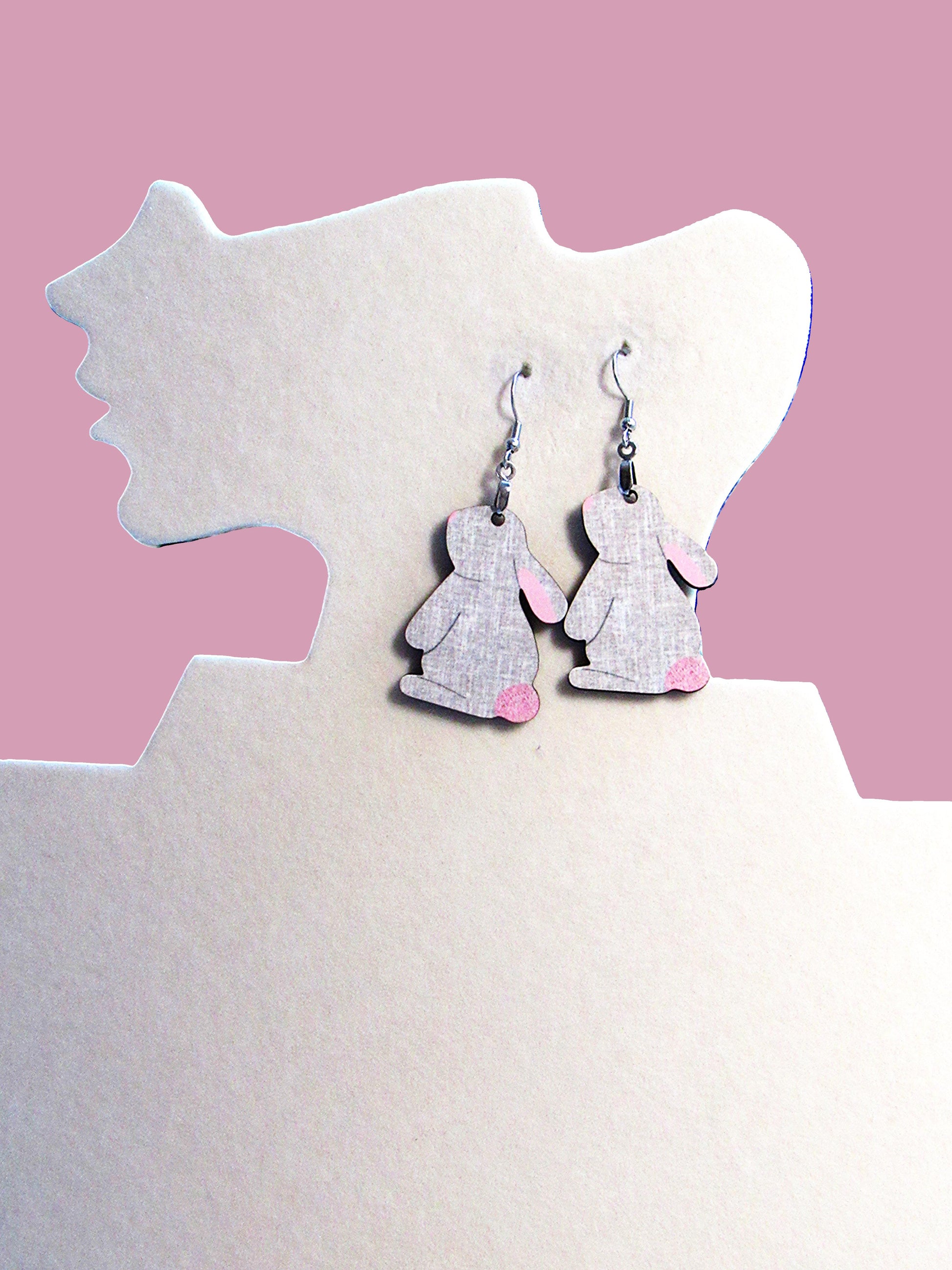 These Bunny Shaped Sublimated Earrings bring a playful touch to any outfit. Crafted from lightweight MDF with a 1.5-inch base and a total length of 2.5 inches, they’re easy to wear all day. The hypoallergenic wire ensures comfort for sensitive ears, making these earrings a fun and friendly accessory for every bunny lover.