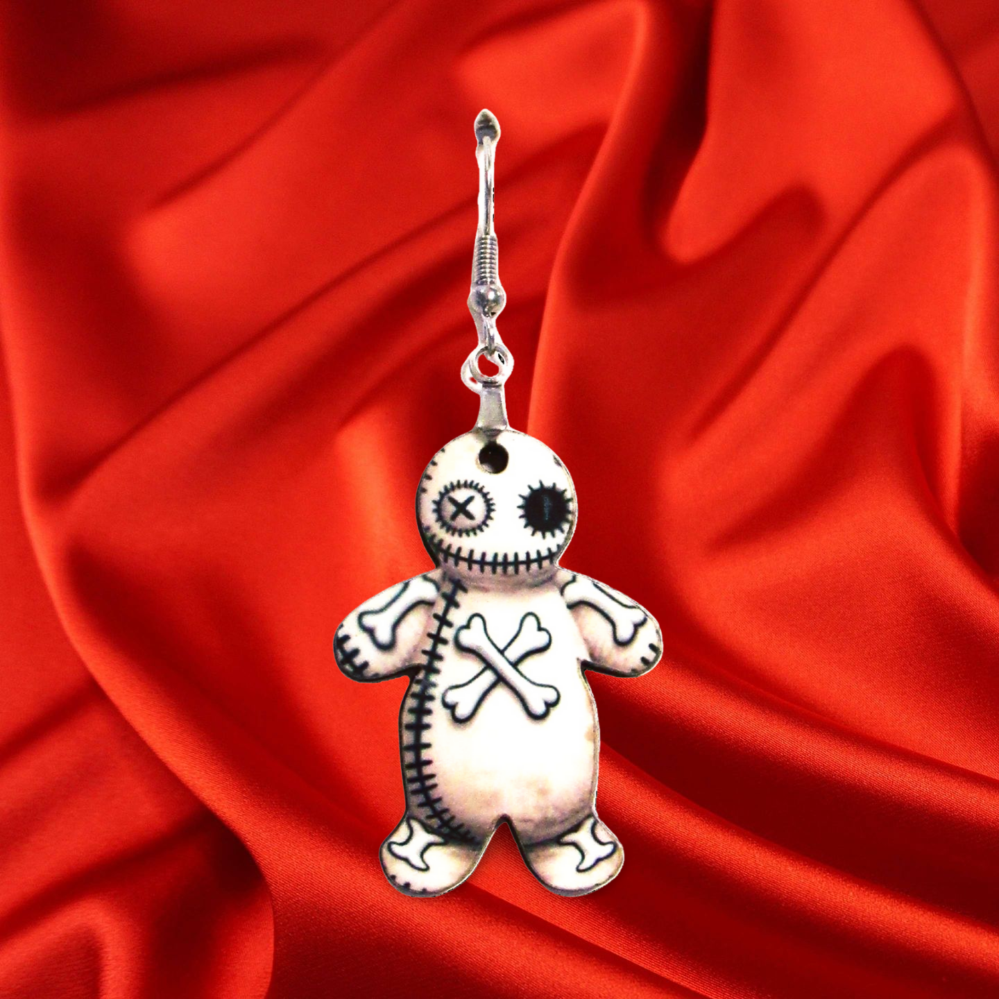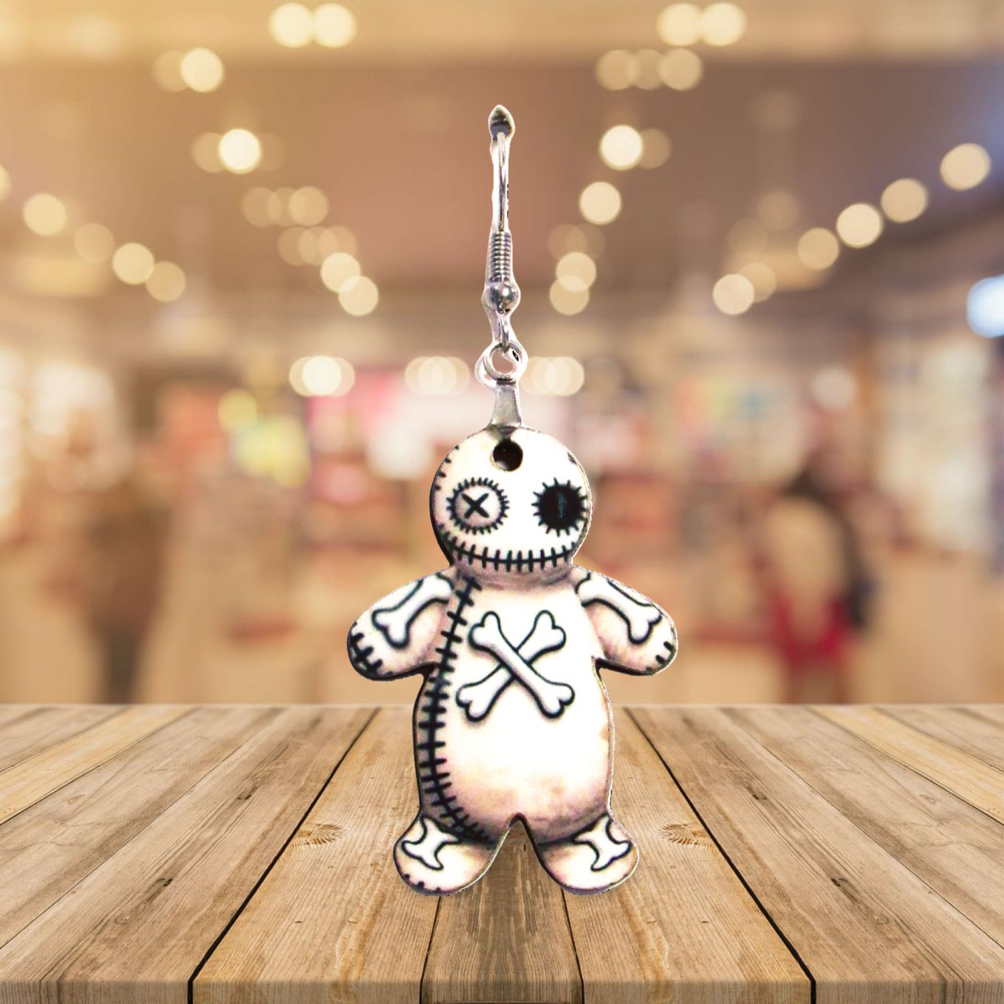 These playful earrings feature a fluffy monster design crafted from durable MDF with a 1.5-inch base and a total length of 2.5 inches. Lightweight and easy to wear, they hang from hypoallergenic wire, making them comfortable for sensitive ears. Perfect for adding a fun, voodoo doll-inspired touch to your look!