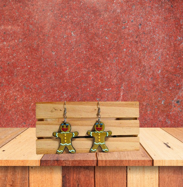 Gingerbread Man Shaped Sublimated Earrings 1.5 inch
