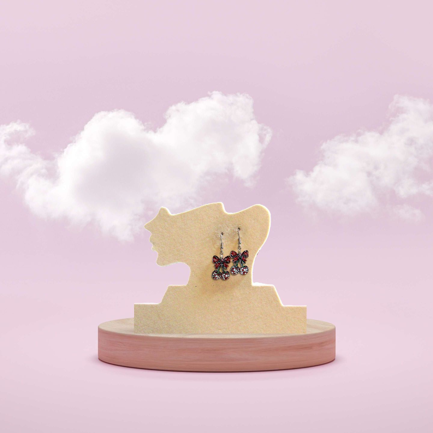Glitter Acrylic Cherries with Bow Shaped Sublimated Earrings 1 inch