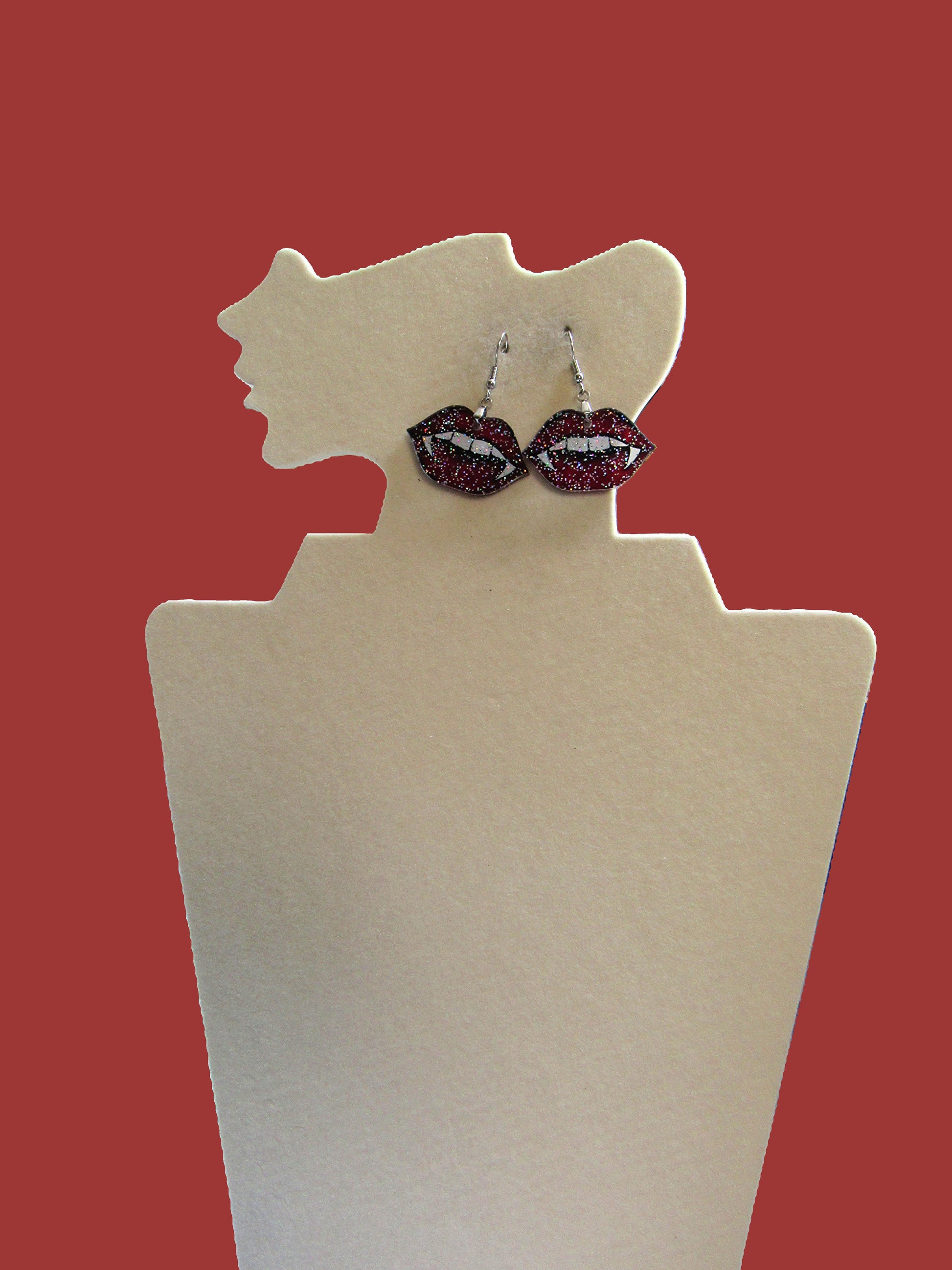 Glitter Acrylic Sublimated Fang Lip Earrings