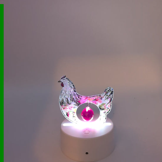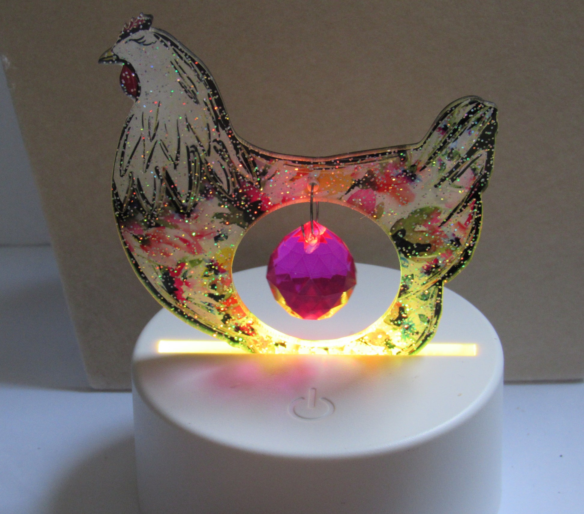Elevate your crafting projects with this stunning glitter acrylic piece, measuring 3.34x4 inches and crafted at 3mm thickness. One side features beautiful sublimated detailing, while a centerhole showcases a faceted round charm that catches the light beautifully. Perfect for adding sparkle to your creations, this acrylic works wonderfully as a standalone accent or paired with a the included base. Enjoy flexible power options—use three AA batteries installed in the base or plug in the included USB cable for convenient LED illumination. Switch between vibrant colors effortlessly with the touch-activated button or handheld remote control. Whether you're decorating a shelf, desk, or craft space, this versatile light base brings warmth and holiday cheer to any room.