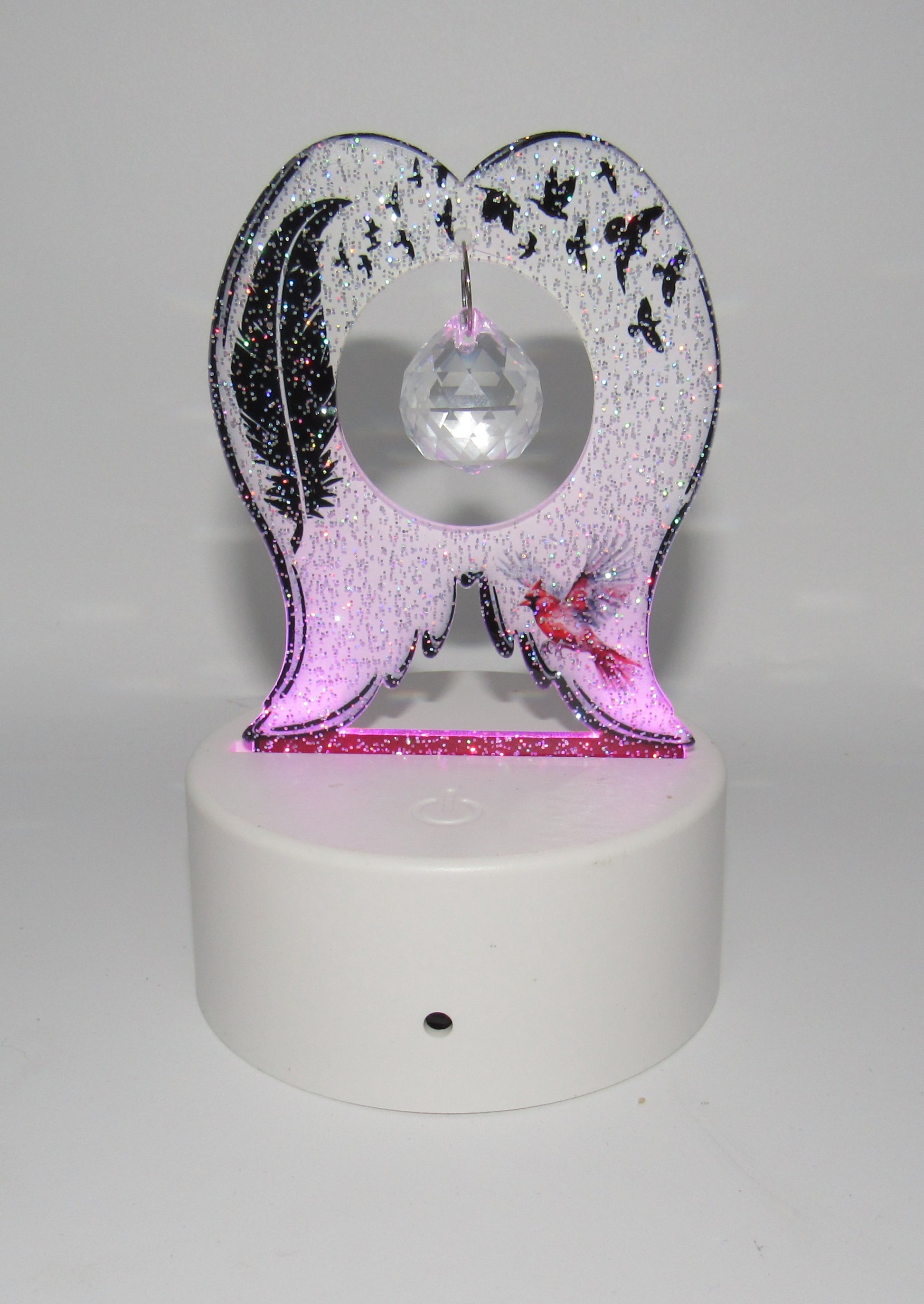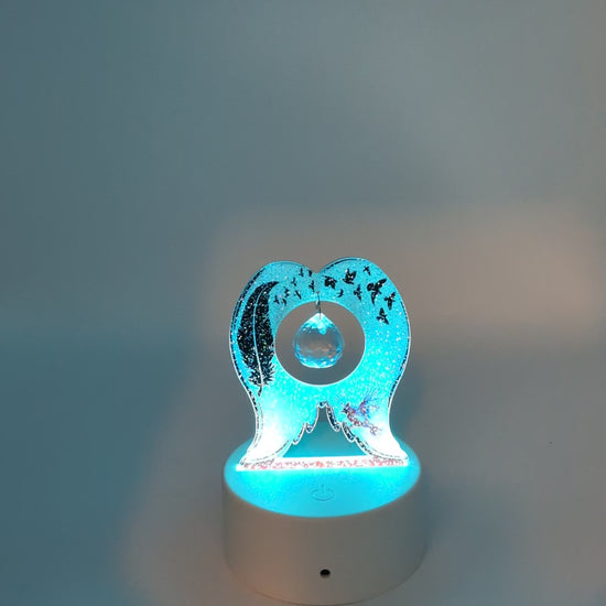 Illuminate your space with a touch of magic using the Glitter Acrylic Angel Wing Light Base Set. This charming light features delicate angel wings crafted from sparkling acrylic, perfectly perched on a glowing light base. Ideal for memorials or adding a whimsical glow to any room, it brings a playful sparkle that lifts the spirit and brightens your day. Enjoy flexible power options—use three AA batteries installed in the base or plug in the included USB cable for convenient LED illumination. Switch between vibrant colors effortlessly with the touch-activated button or handheld remote control. Whether you're decorating a shelf, desk, or craft space, this versatile light base brings warmth and holiday cheer to any room.