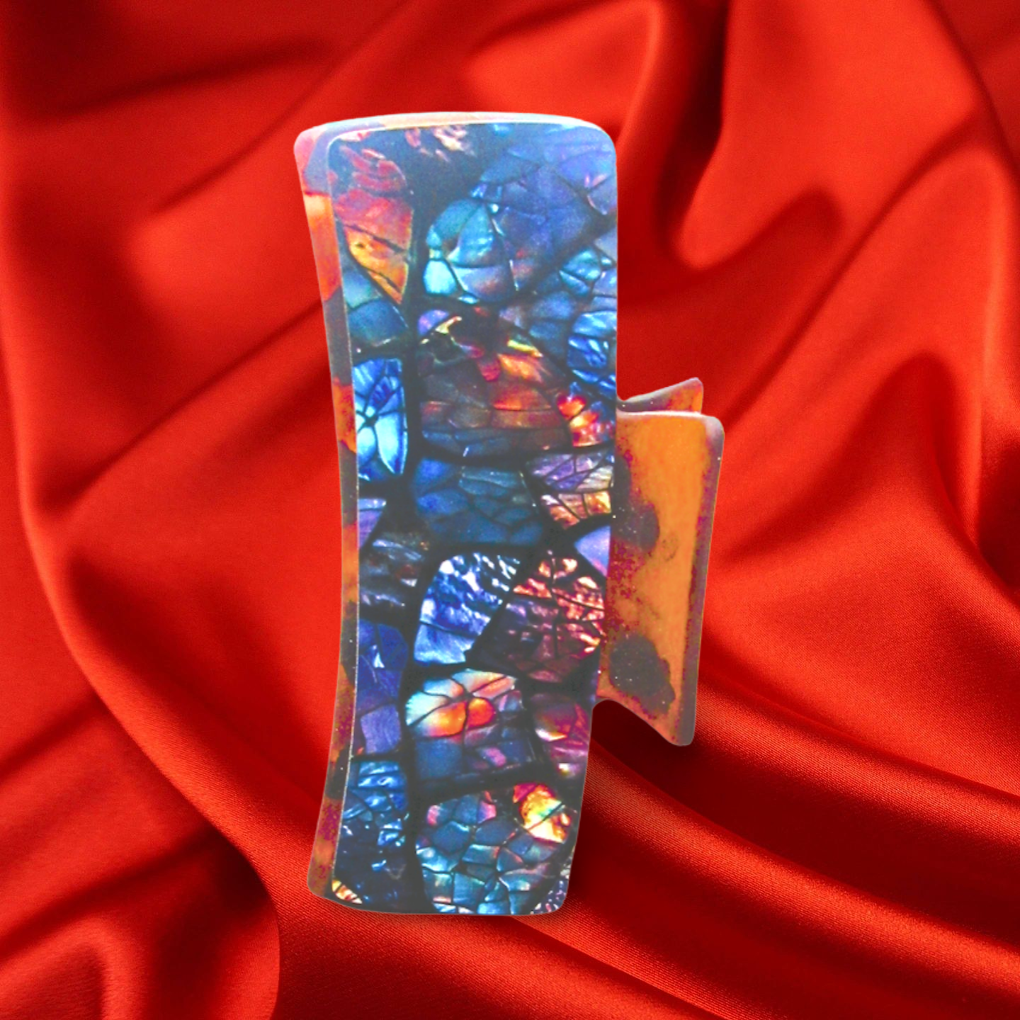 Celebrate the beauty of gemsones with this Large Sublimated Hair Claw Clip, adorned with a sublimated gemstone design. Crafted from durable plastic, alloy, and MDF, it features a sturdy metal spring and interlocking teeth to keep your hair perfectly in place. Measuring about 4.1 inches, this playful clip is both a charming and reliable way to add flair to your look!