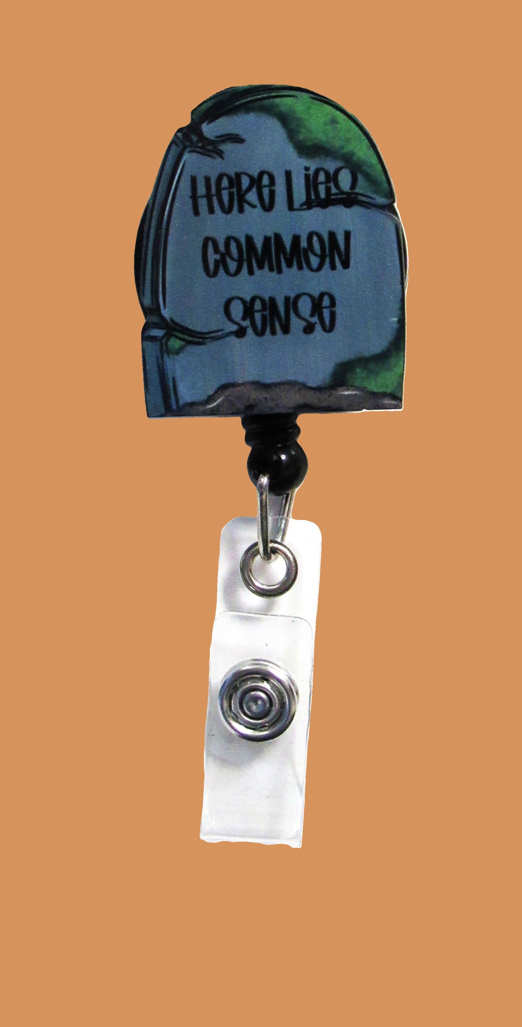 Elevate your everyday carry with the Grave Stone Shaped Sublimated Badge Reel. Designed with a durable 26.5-inch nylon cord and a stainless steel spring encased in sturdy plastic, it offers reliable retractability and long-lasting performance. The strong metal clip ensures your badge stays secure throughout the day. Featuring the witty "Here Lies Common Sense" theme, this badge reel not only keeps you organized but also showcases your personality with a bold statement. Choose this practical and distinctive accessory to make your ID holder work as hard as you do.