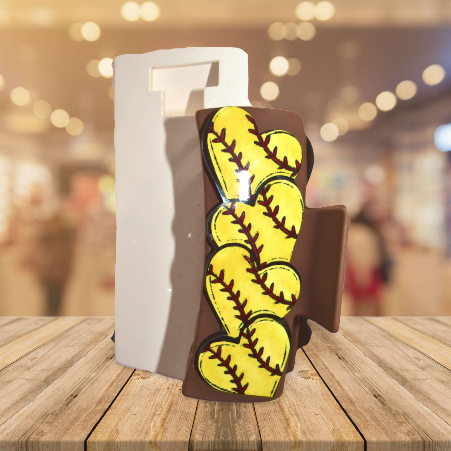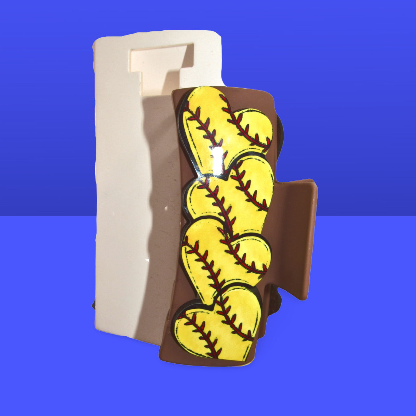 Add a playful touch to your hairstyle with this large heart-shaped hair clip. Measuring 4 inches long, it’s crafted from durable plastic, alloy, and MDF, ensuring it stays sturdy all day. The metal spring and interlocking teeth hold your hair perfectly in place, while the fun softball print adds a sporty, whimsical vibe. Perfect for keeping your locks neat with a smile!