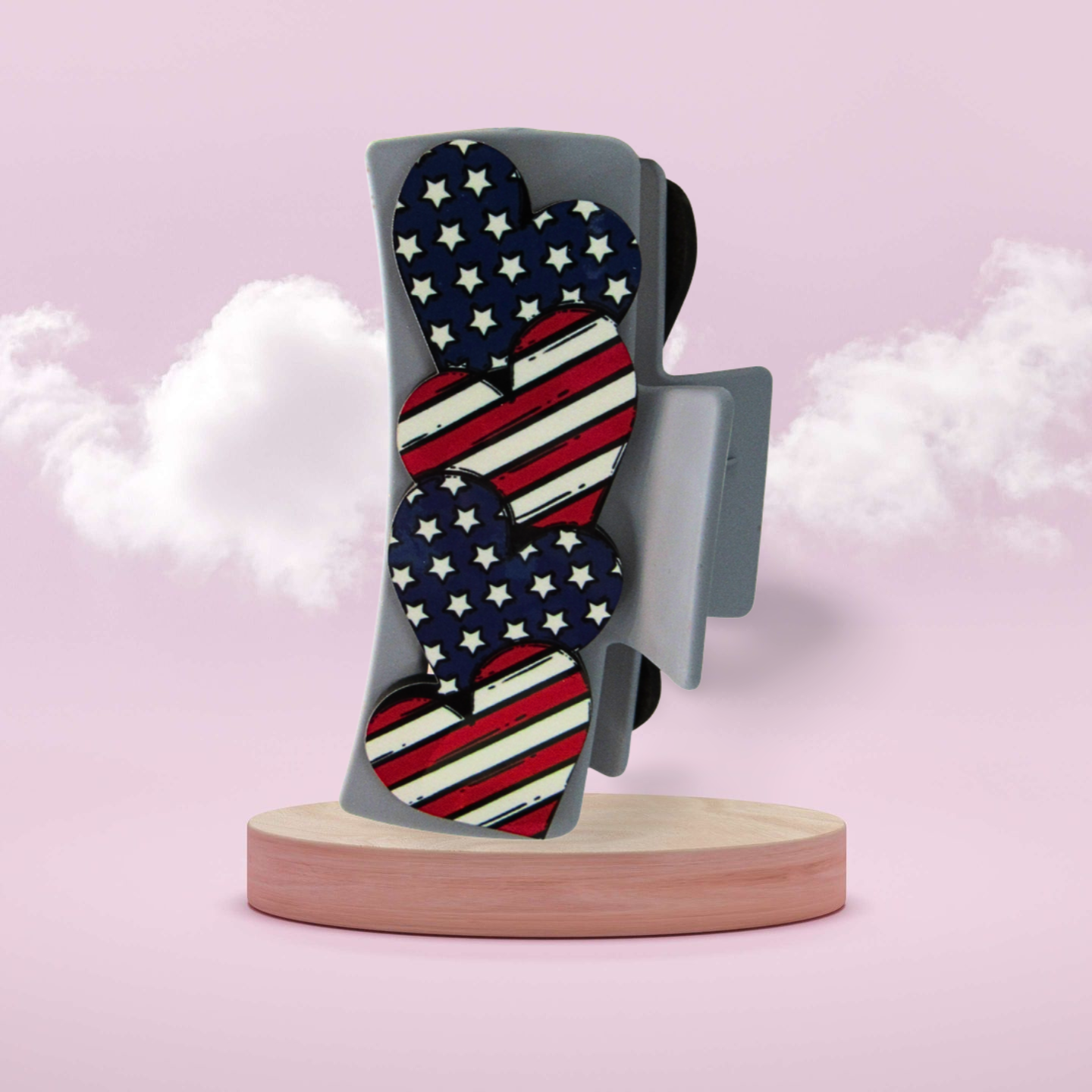 Add a dash of fun to your hairstyle with this heart-shaped hair clip! Measuring 4.1 inches long, it’s made from durable plastic, alloy, and MDF for long-lasting use. The sturdy metal spring and interlocking teeth keep your hair secure all day while showing off a patriotic theme. Perfect for adding a playful, spirited touch to any look!