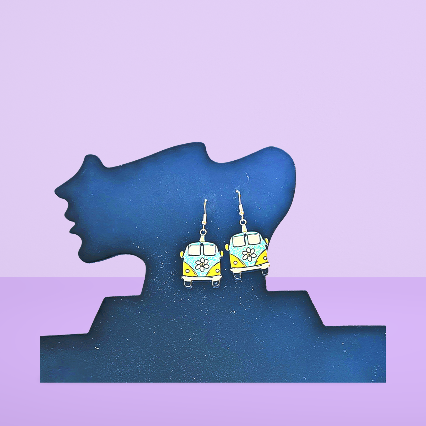 These playful Hippie Van earrings feature a 1-inch MDF base, perfectly sized for everyday fun. Crafted with hypoallergenic wire, they’re gentle on sensitive ears while adding a quirky, colorful touch to your look. Enjoy a lightweight, comfortable accessory that brings a retro vibe wherever you go!
