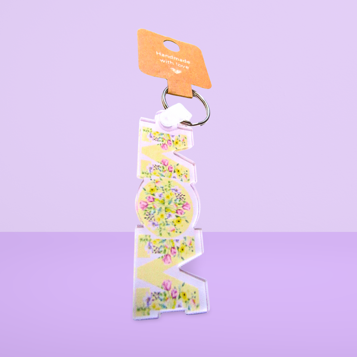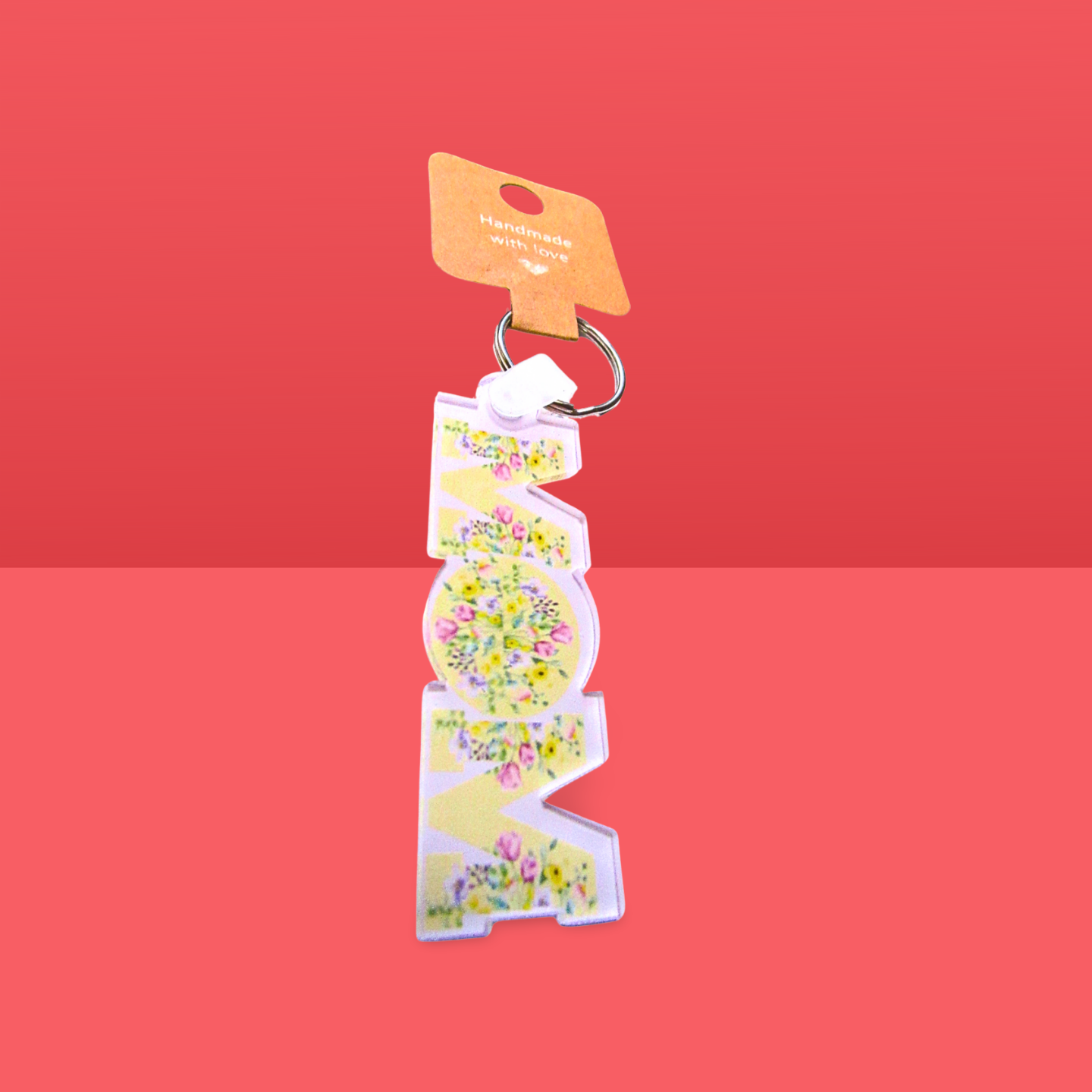 Show mom how much she means to you with this elegant acrylic keychain shaped like the word "MOM." Measuring 1x3 inches, it's the perfect size to carry on keys, attach to a bag, or display with pride. The sublimated design on one side creates crisp, vibrant artwork that resists fading and maintains its beauty through everyday wear. A modern, durable keepsake that celebrates her importance in your life with style and sentiment.