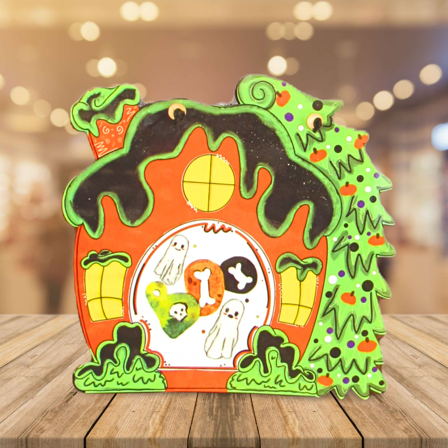 Add a spooky touch to your Halloween decor with this playful door hanger! Made from sturdy MDF, it measures 8 x 7.75 inches and features a charming house and tree design sublimated on one side. Finished with rustic jute rope, it’s ready to hang and welcome trick-or-treaters with festive fun. Perfect for adding a seasonal vibe to any door or wall!