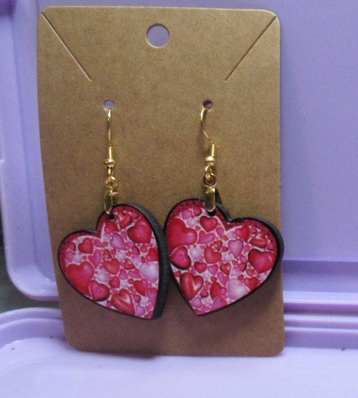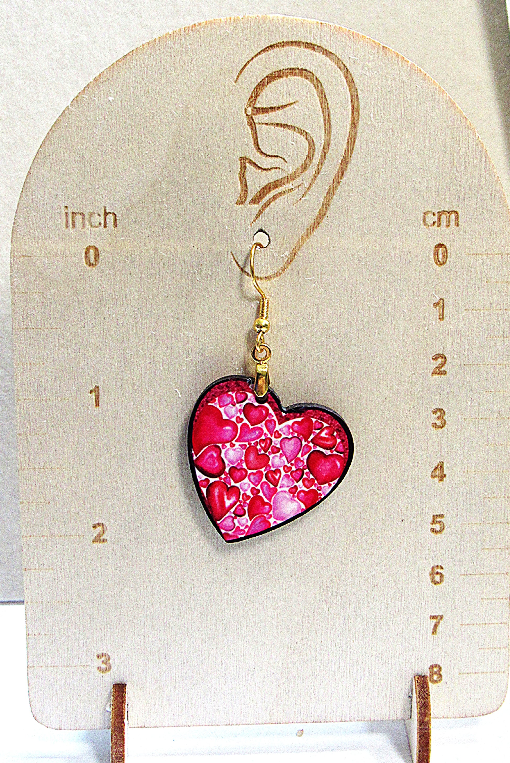 These Heart Shaped Sublimated Earrings feature a 1.5-inch base and a total length of 2.5 inches, crafted from durable MDF material. They hang comfortably on hypoallergenic wire, making them a great choice for sensitive ears. Stylish and gentle, these earrings add a charming touch while prioritizing your comfort.