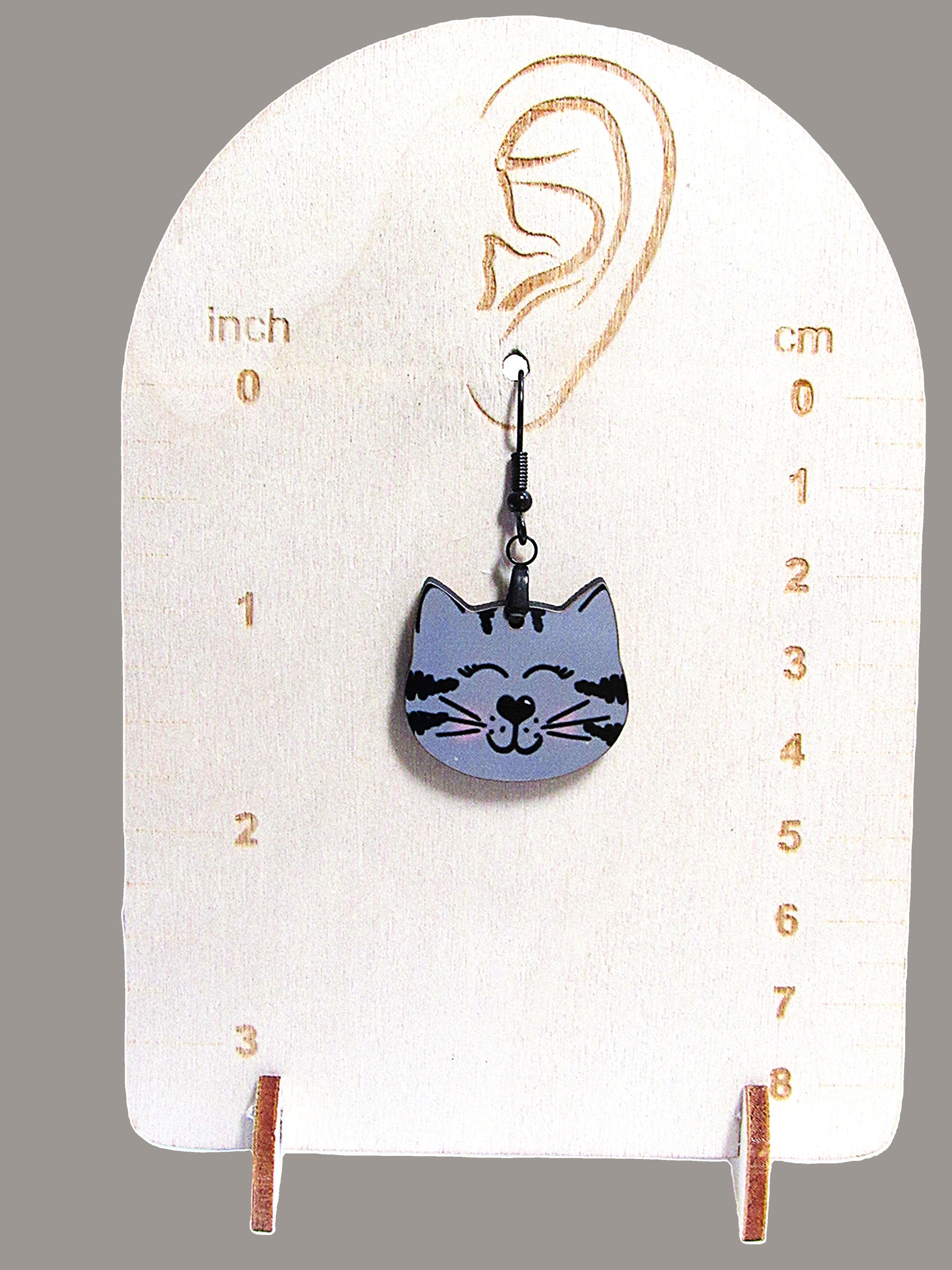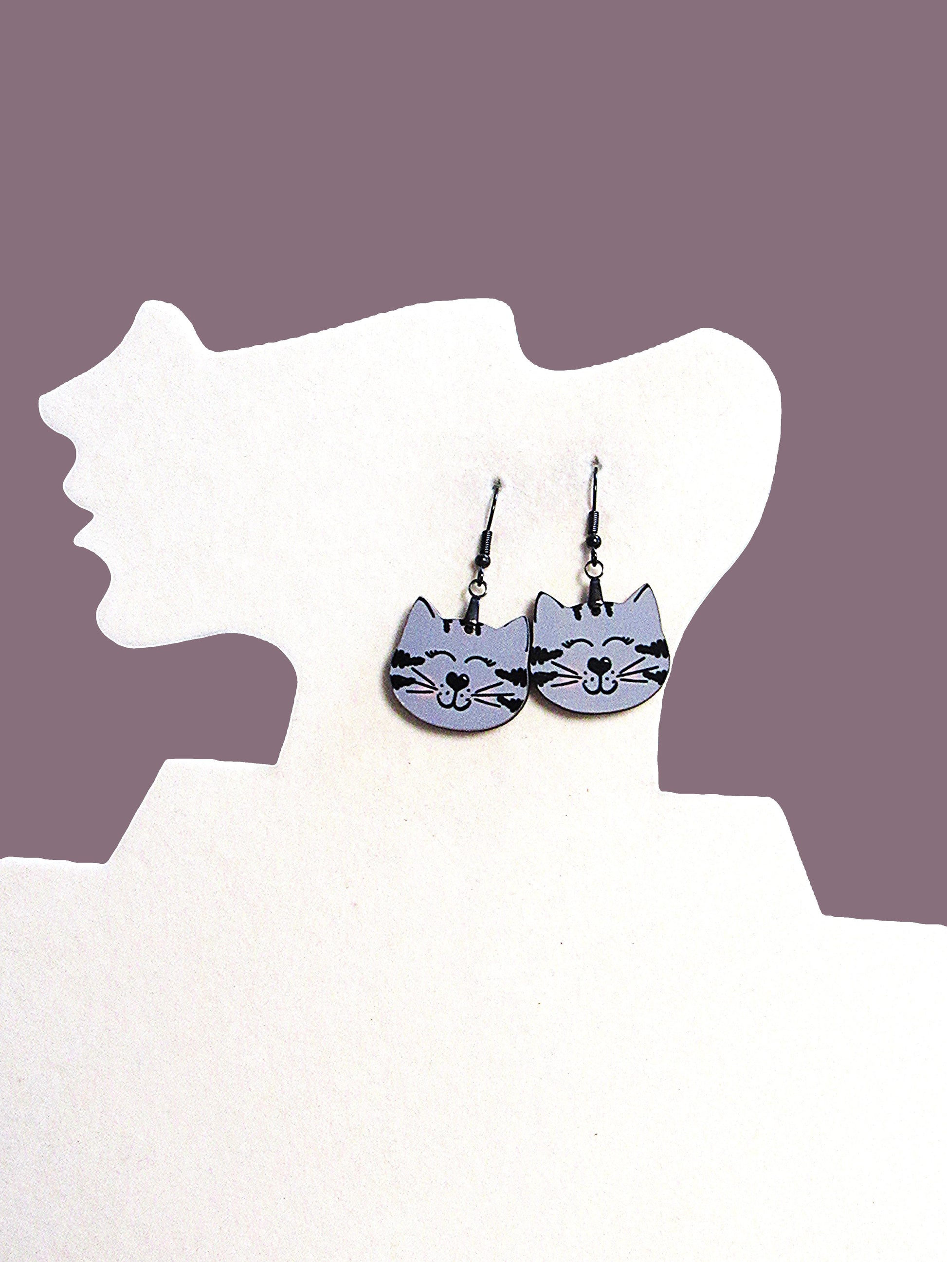 These playful cat head-shaped earrings measure 1 inch at the base with a total length of 2 inches, crafted from durable MDF for a lightweight feel. Featuring hypoallergenic wire, they’re perfect for sensitive ears, adding a fun and comfortable touch to your everyday style.