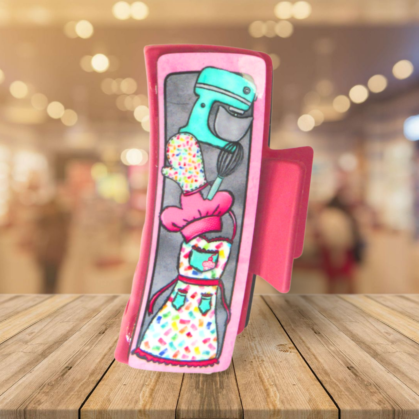 Keep your locks deliciously styled with this Large Sublimated Hair Claw Clip! Measuring about 4.1 inches, it combines durable plastic, alloy, and MDF with a strong metal spring and interlocking teeth to hold your hair securely. Perfect for adding a fun, baking-themed twist to your look, this clip will keep your hair perfectly in place while you whip up creativity or just enjoy the day.