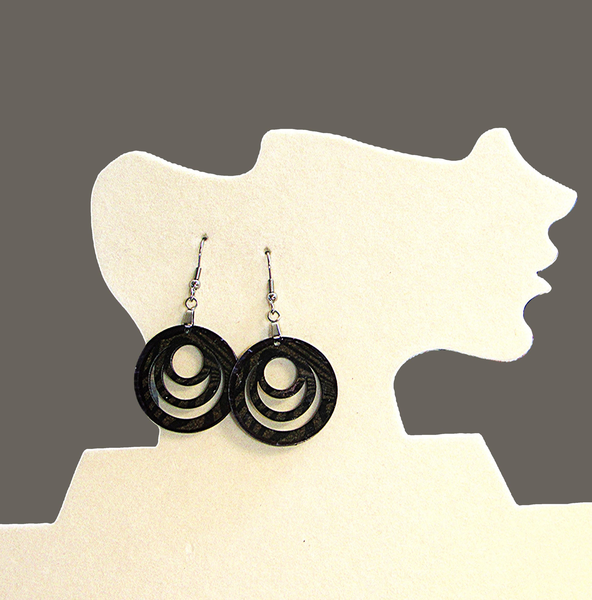Add a fun twist to your look with these Open Circle Shaped Sublimated Earrings! Featuring a 1-inch base and a 2-inch total length, they’re made from lightweight MDF and hang from hypoallergenic wire, perfect for sensitive ears. The stylish black and gray tones make them a versatile accessory that’s playful yet chic.