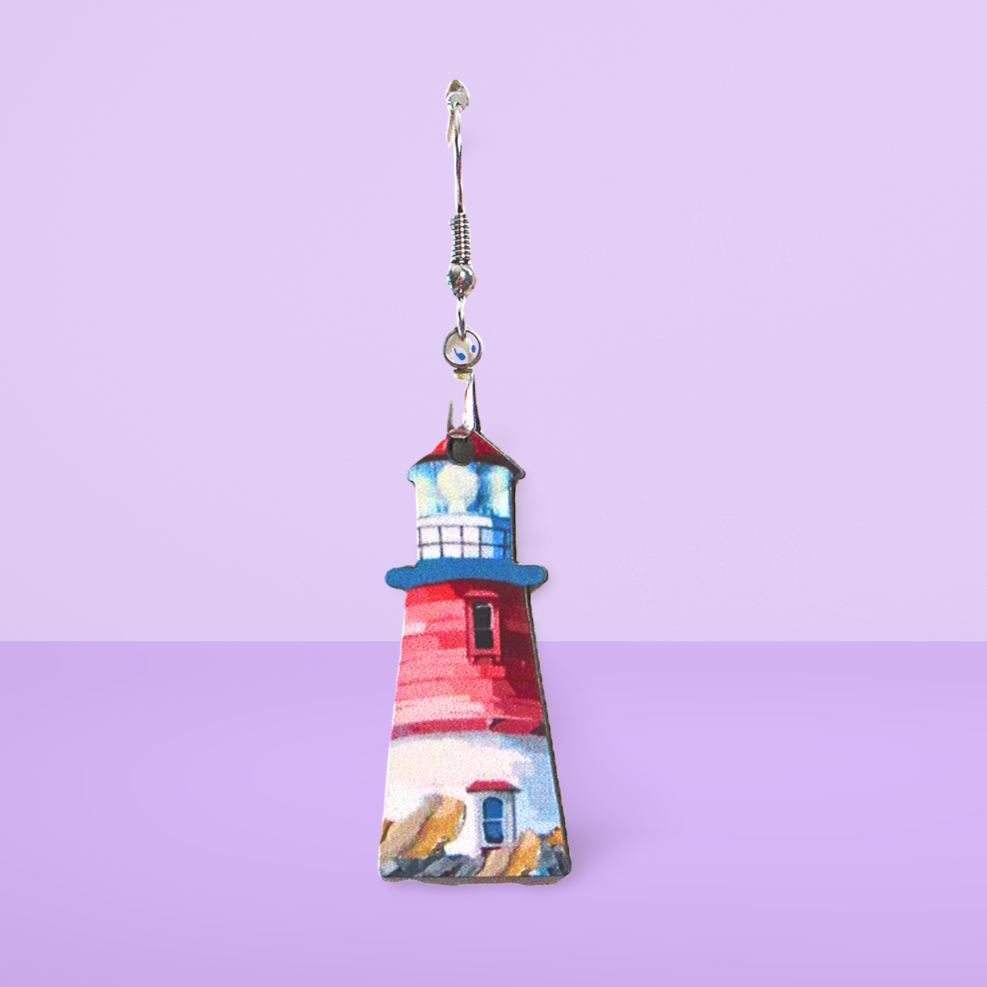 Lighthouse Shaped Sublimated Earrings MDF 1.5 Inch.