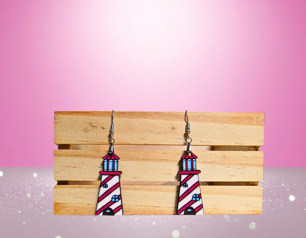 MDF-Lighthouse Shaped Sublimated Earrings 1.5 Inch.