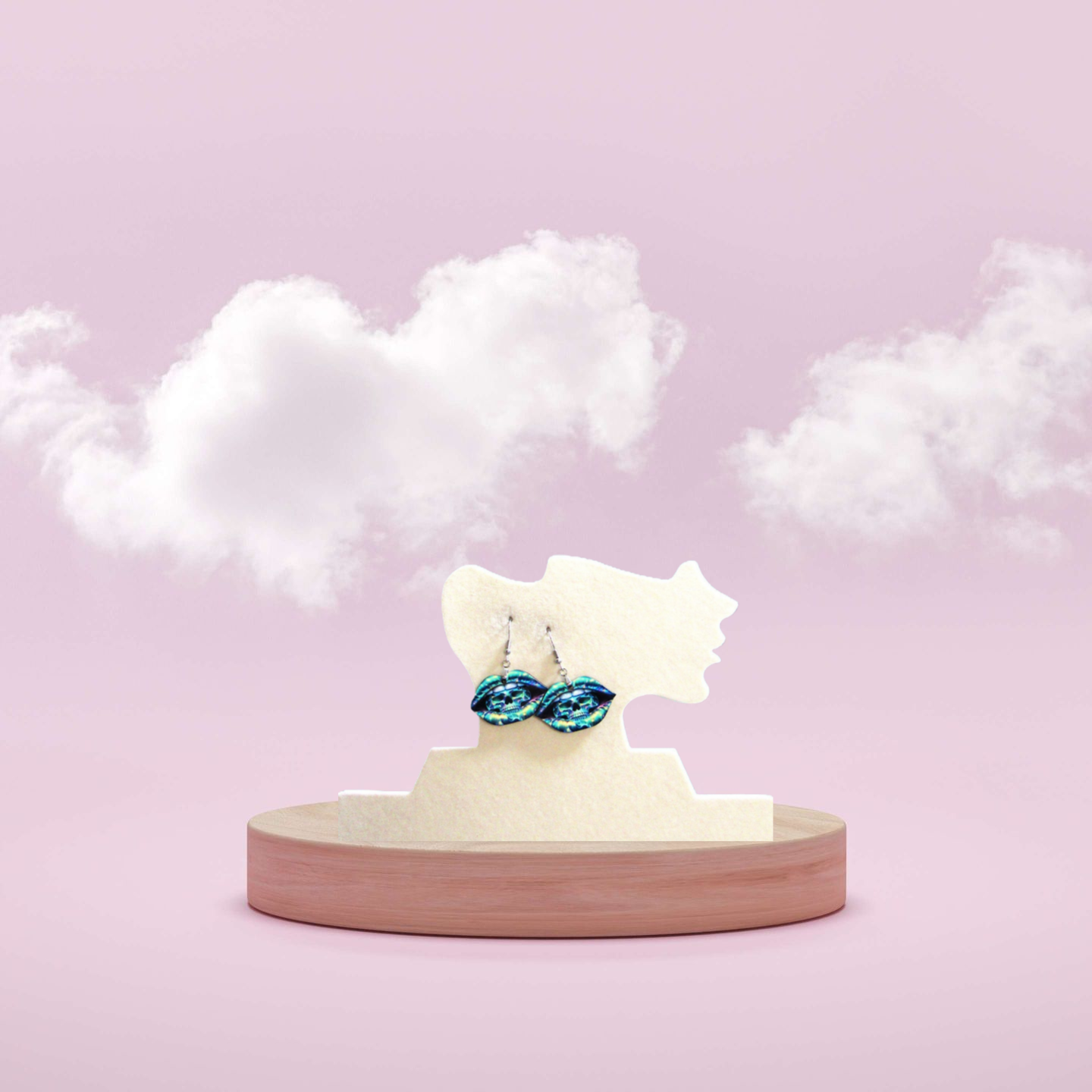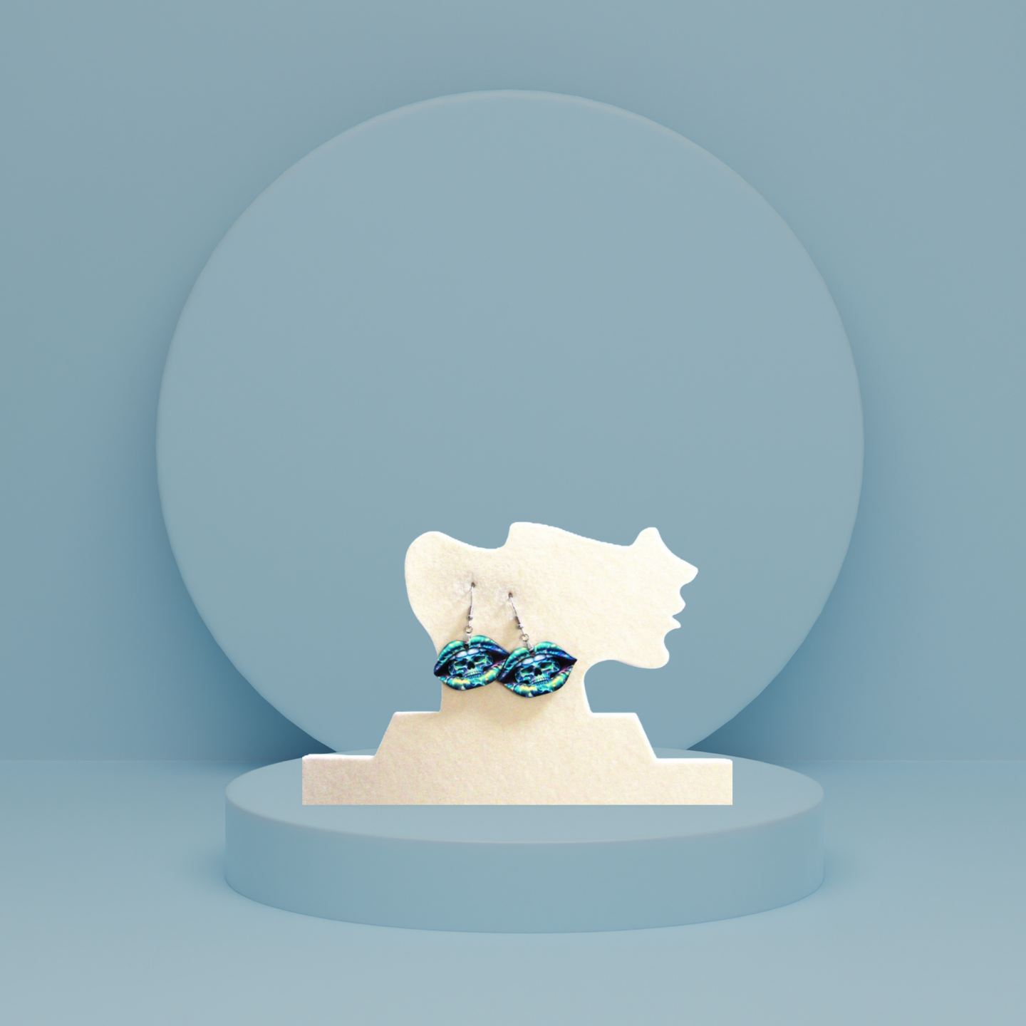 These Lip Shaped Sublimated Earrings feature a teal skull lip design on durable MDF measuring 1.5 inches wide and 2 inches long. Lightweight and comfortable, they hang from hypoallergenic wire, making them ideal for sensitive ears. Add a bold, edgy touch to your look while staying allergy-free.