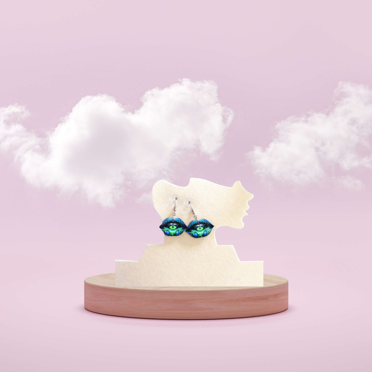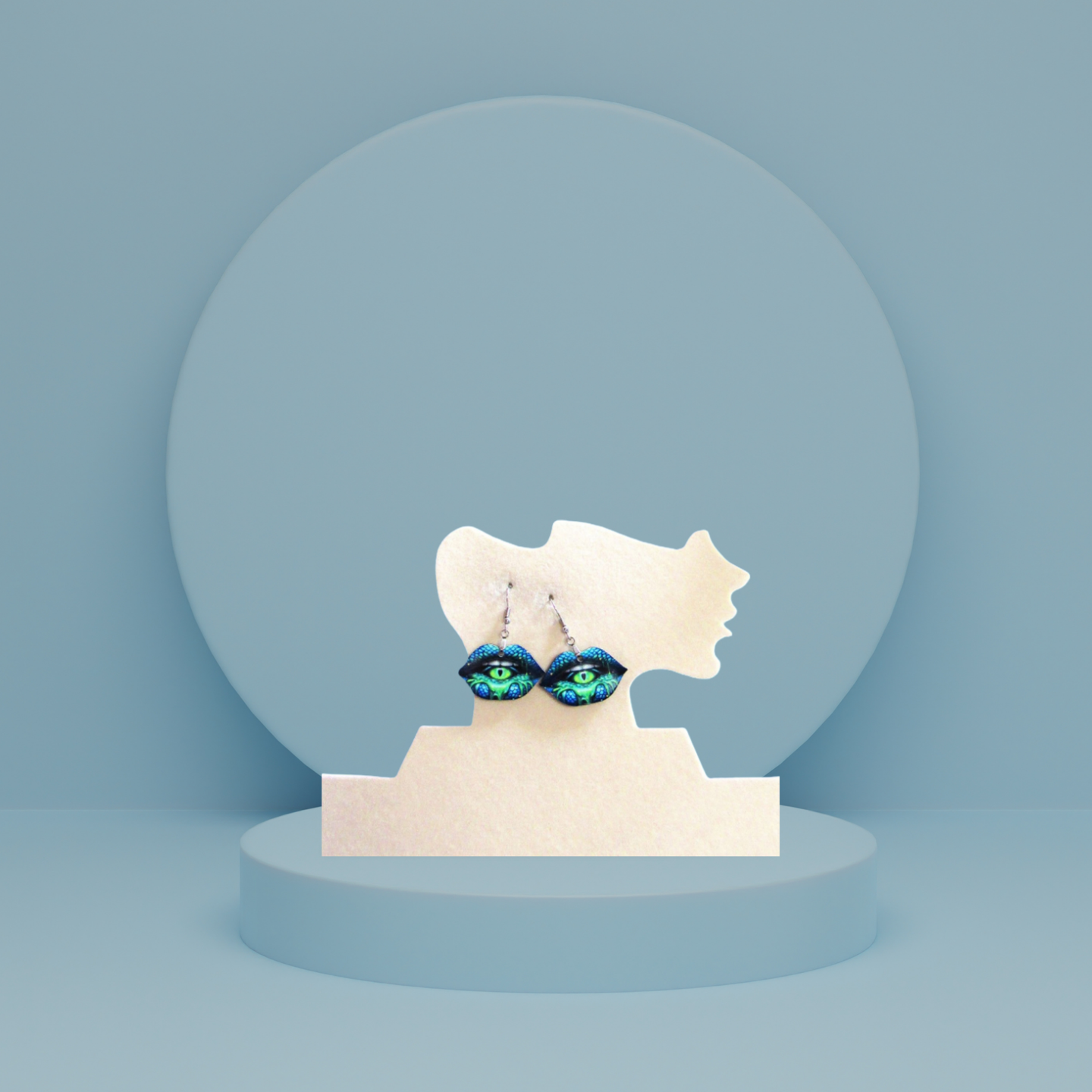 These Lip Shaped Sublimated Earrings feature a Blue Snake Lips design on durable MDF measuring 1.5 inches wide and 2 inches long. Lightweight and comfortable, they hang from hypoallergenic wire, making them ideal for sensitive ears. Add a bold, edgy touch to your look while staying allergy-free.